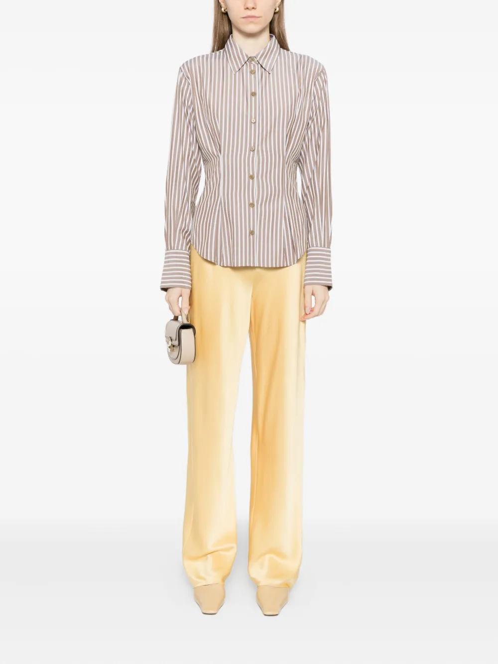 light brown concealed front button, hook and zip fastening two rear welt pockets