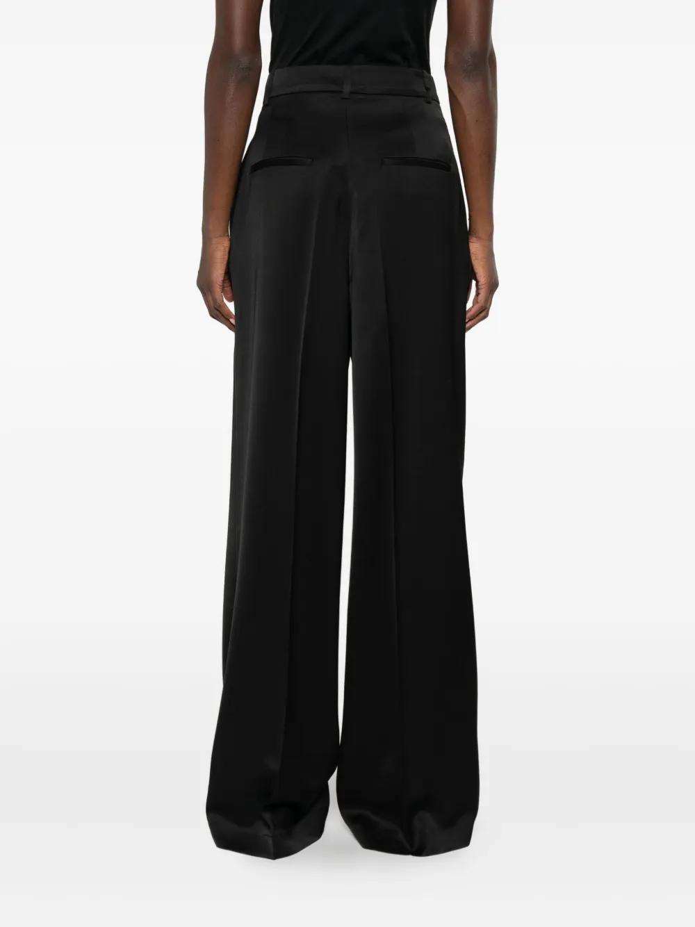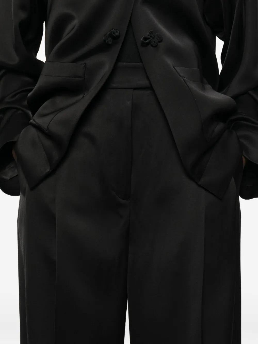black satin finish high-waist front pleats belt loops concealed front fastening