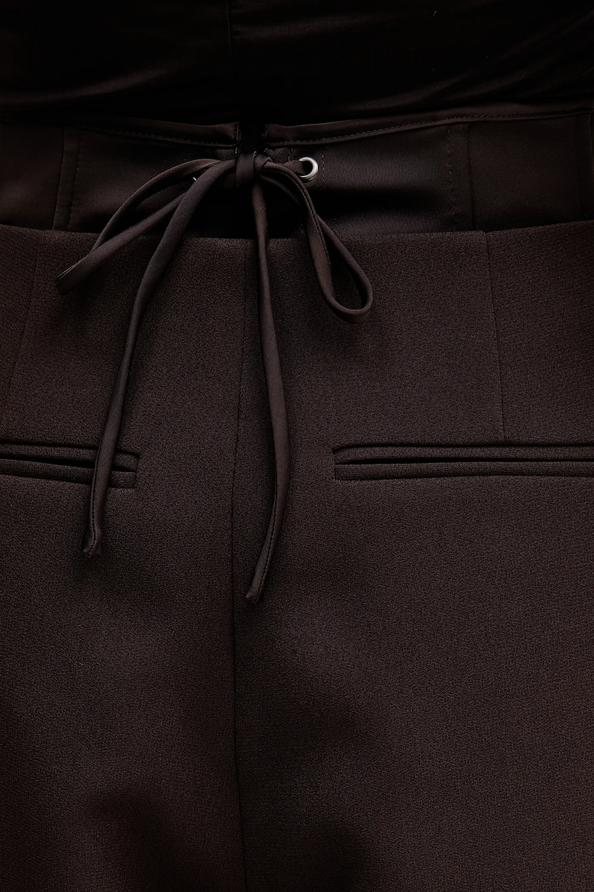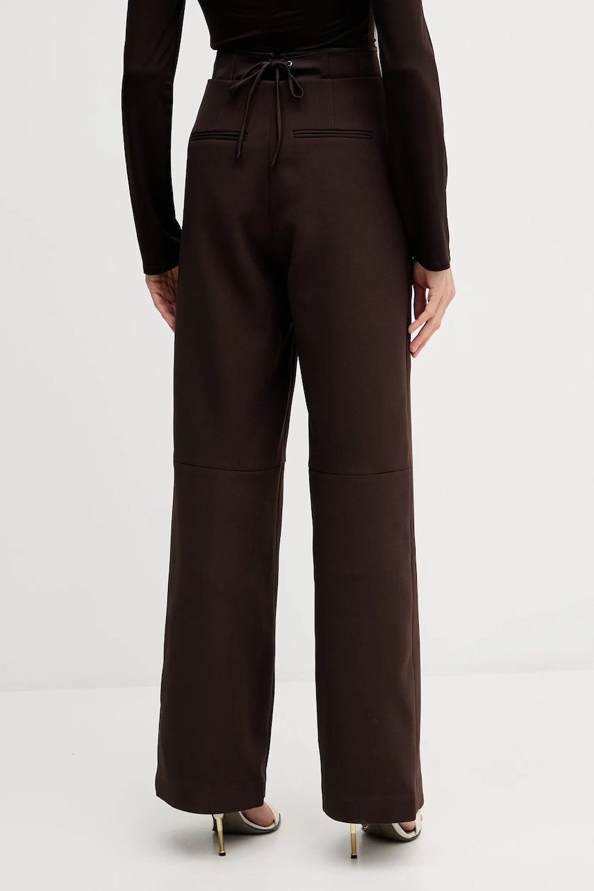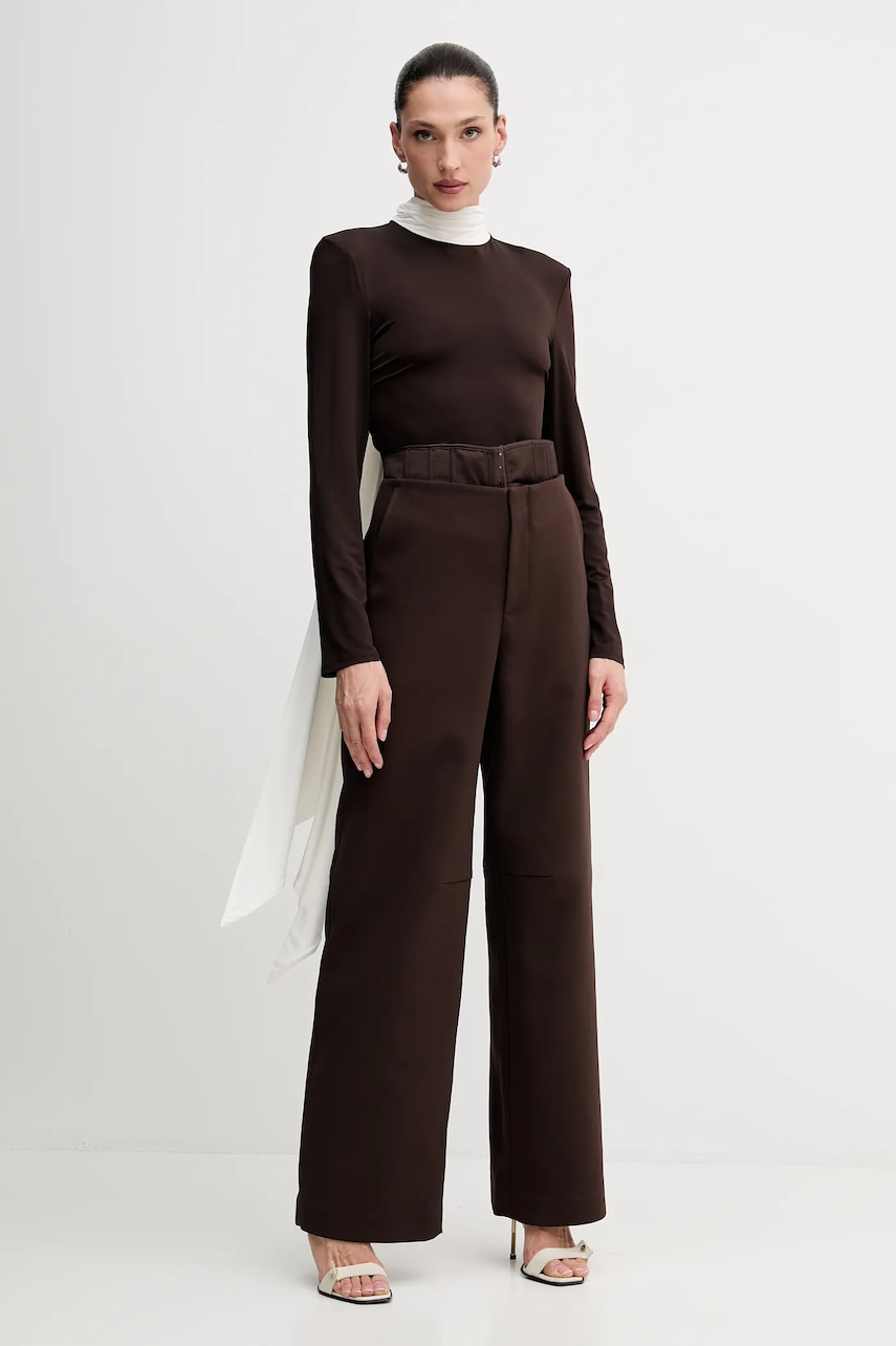 Rotate spodnie damskie kolor brązowy szerokie high waist 1149412910