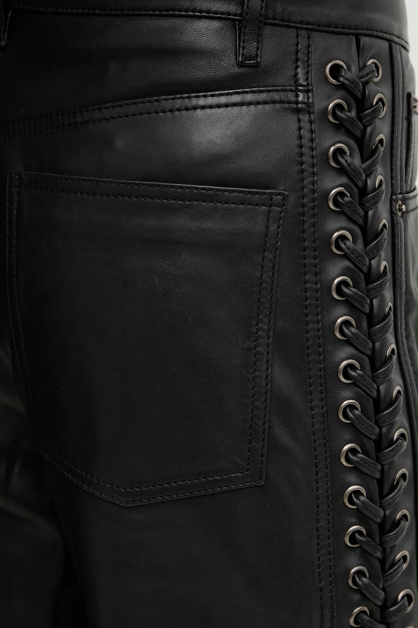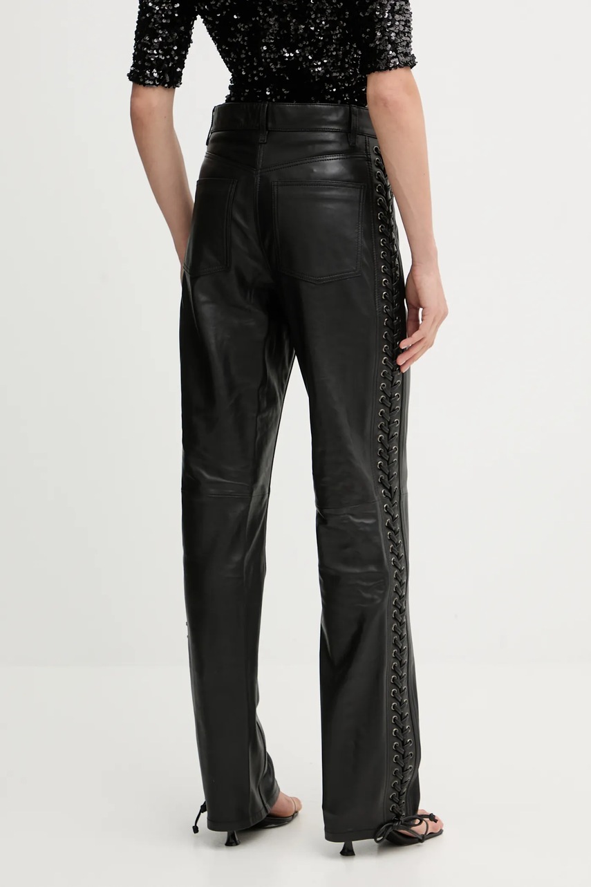 Rotate spodnie skórzane damskie kolor czarny szerokie high waist 115133100
