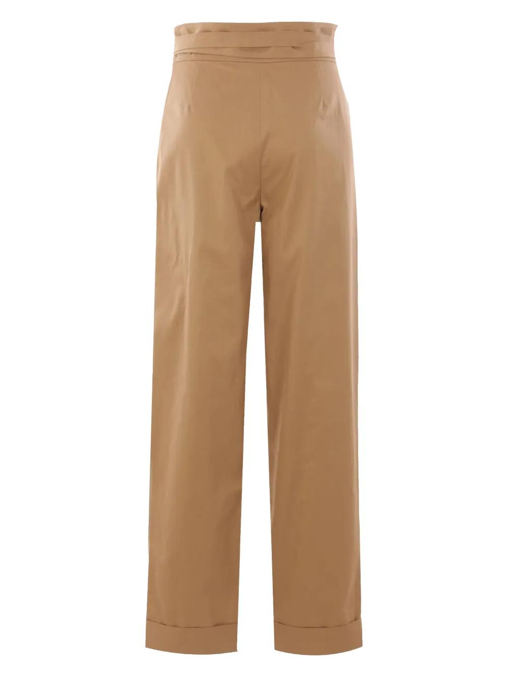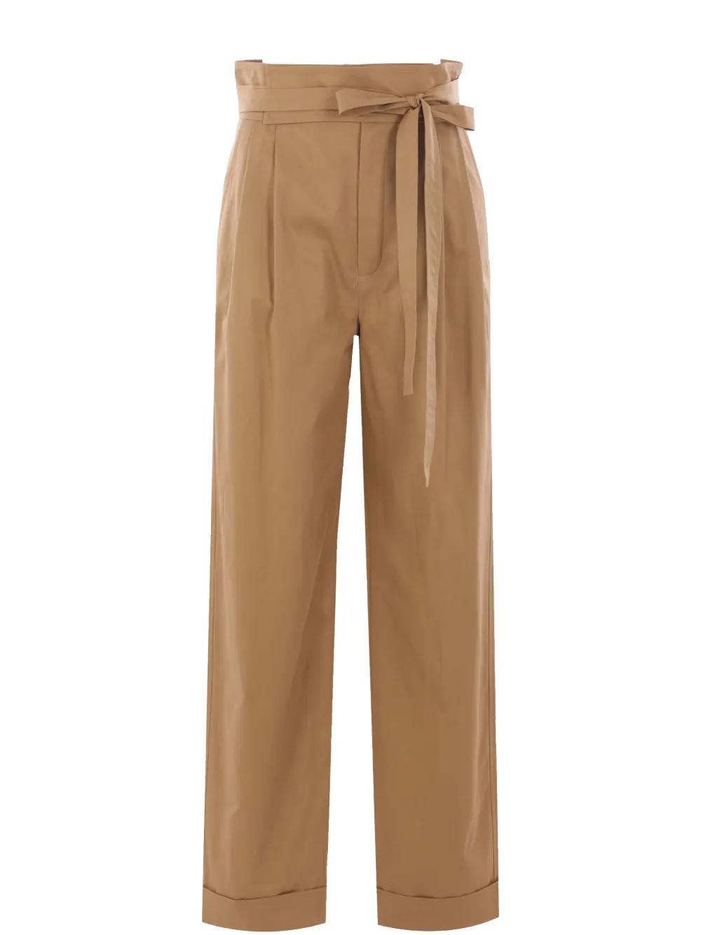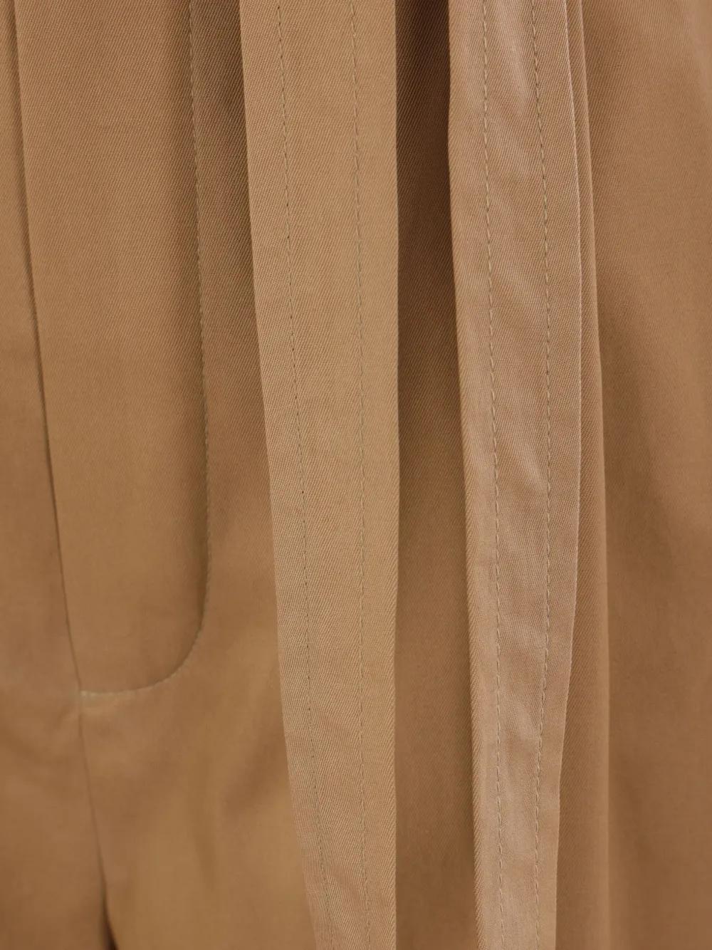 camel brown front tie fastening pleat detailing straight leg