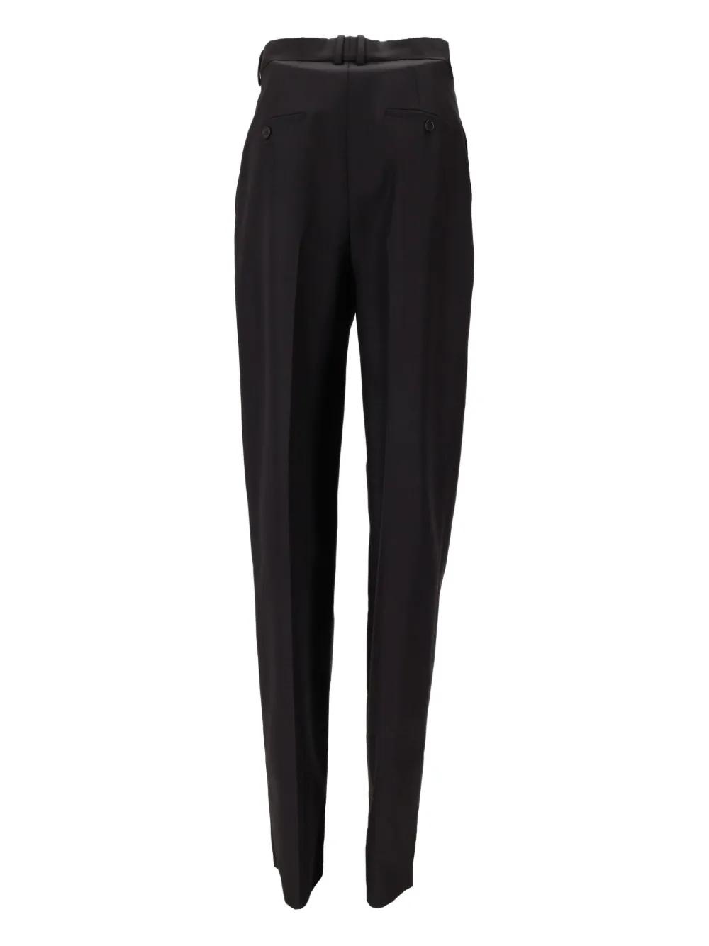 black straight leg belt loops pleated front button fastening back welt pocket