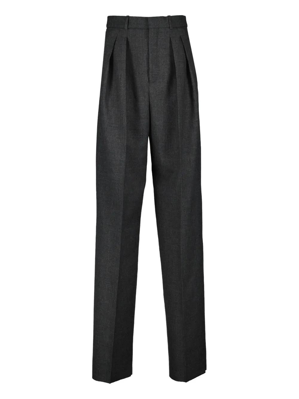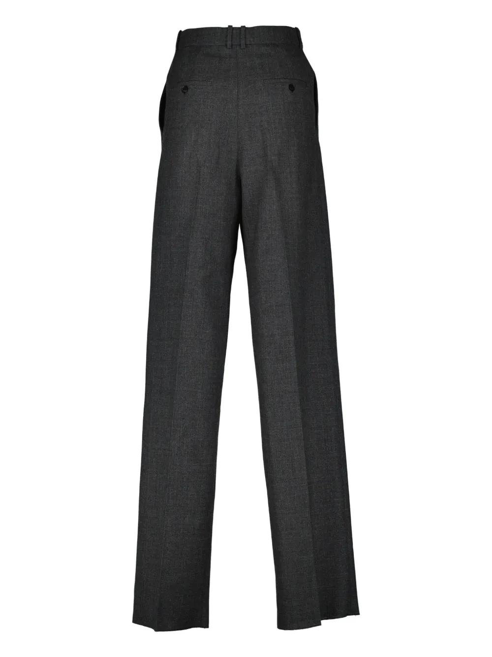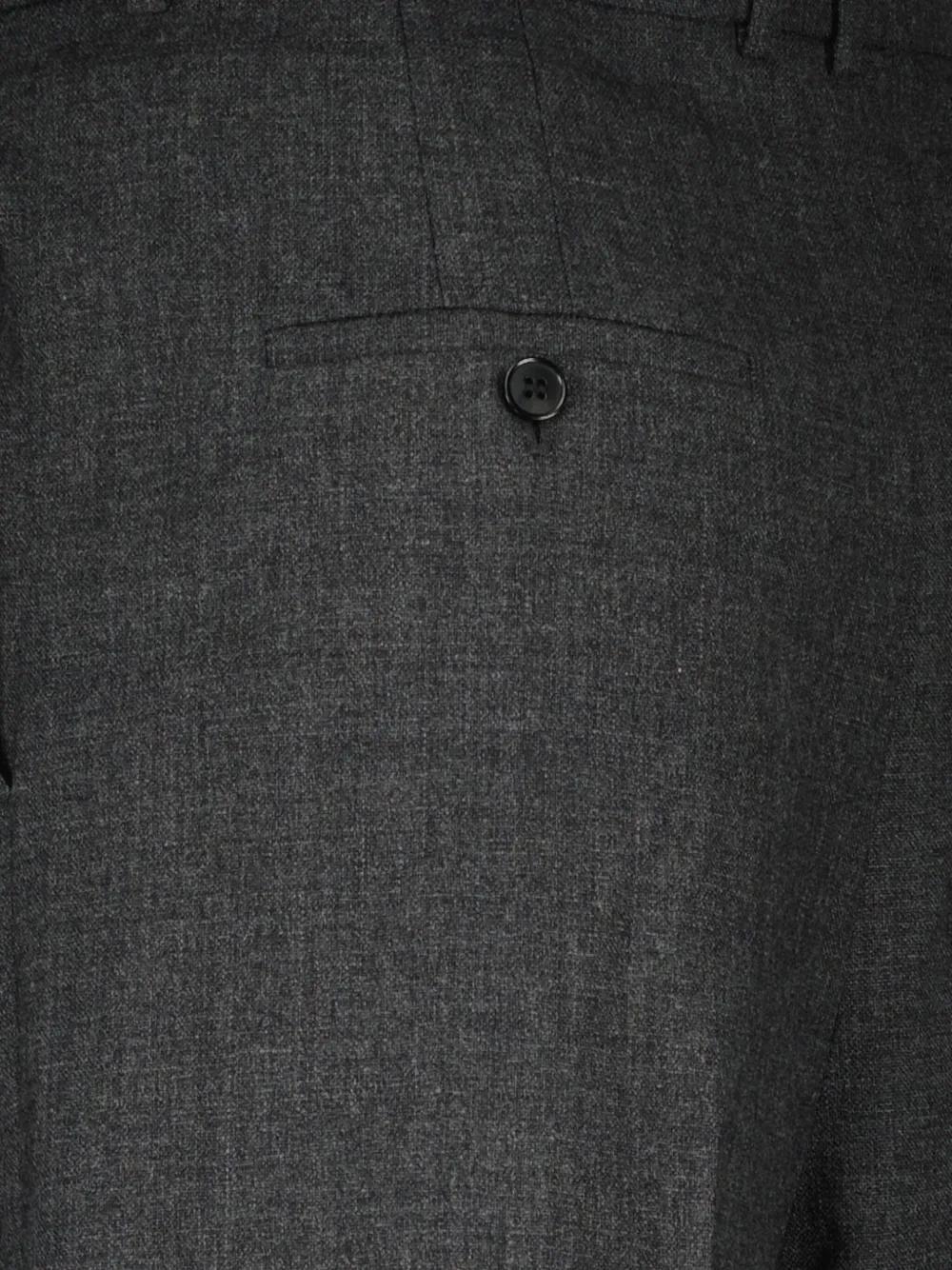 black concealed front button, hook and zip fastening belt loops two side slit pockets two rear button-fastening pockets