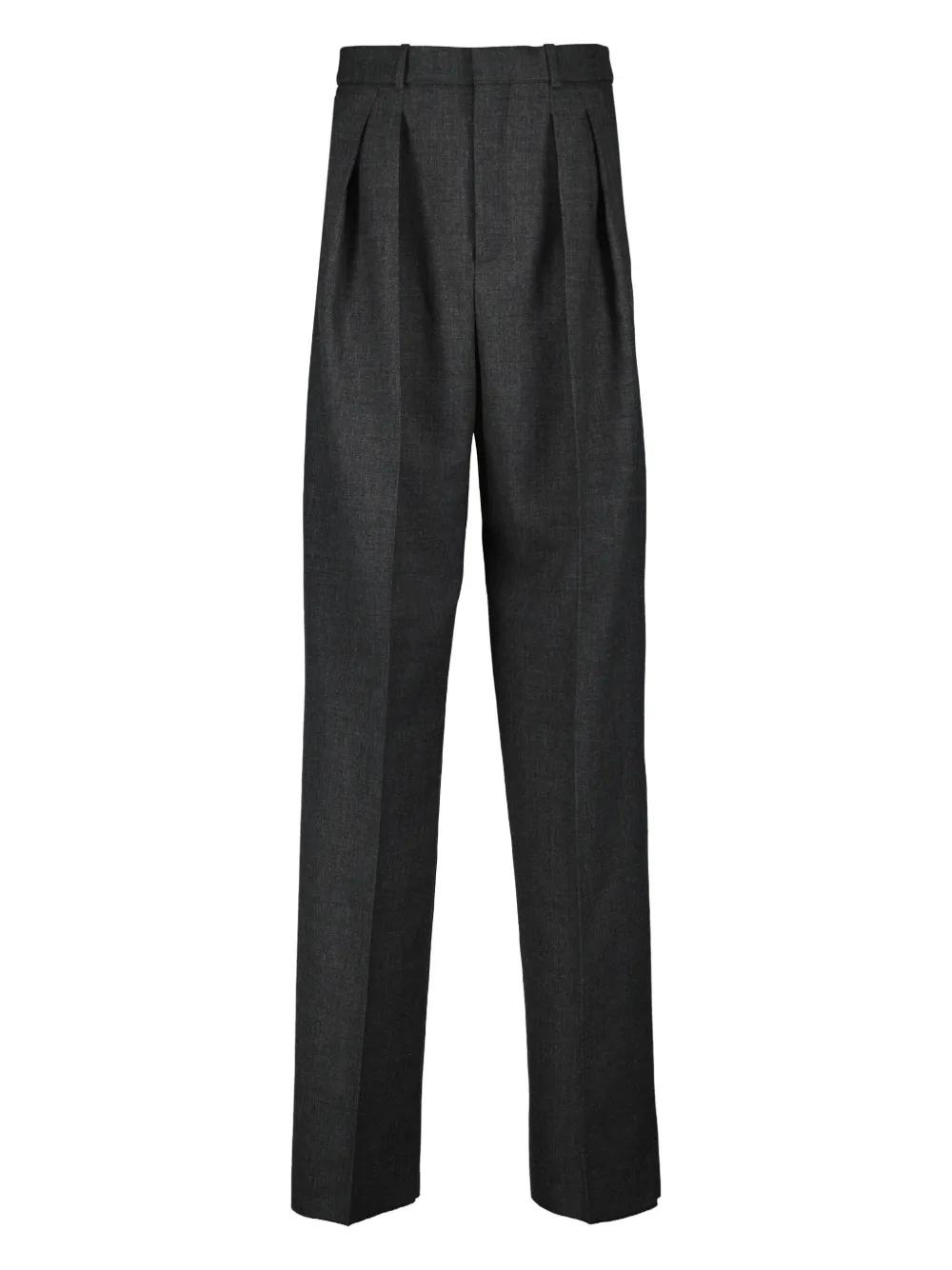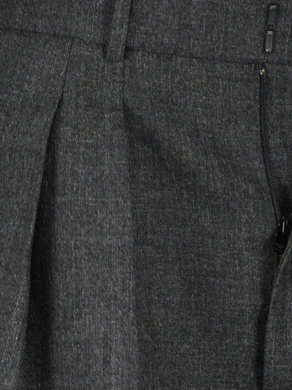 anthracite grey concealed front button, hook and zip fastening belt loops two side slit pockets two rear button-fastening jetted pockets
