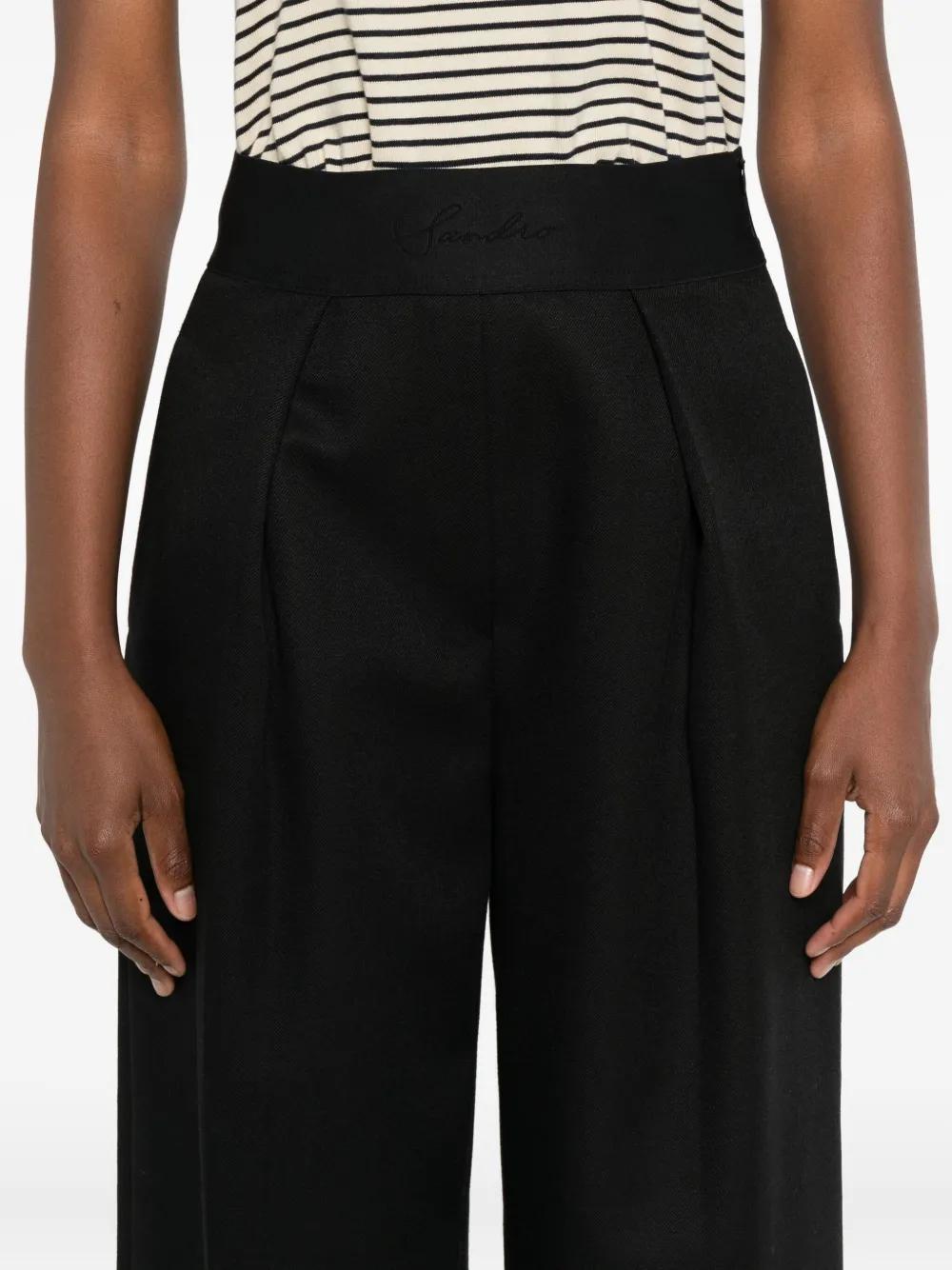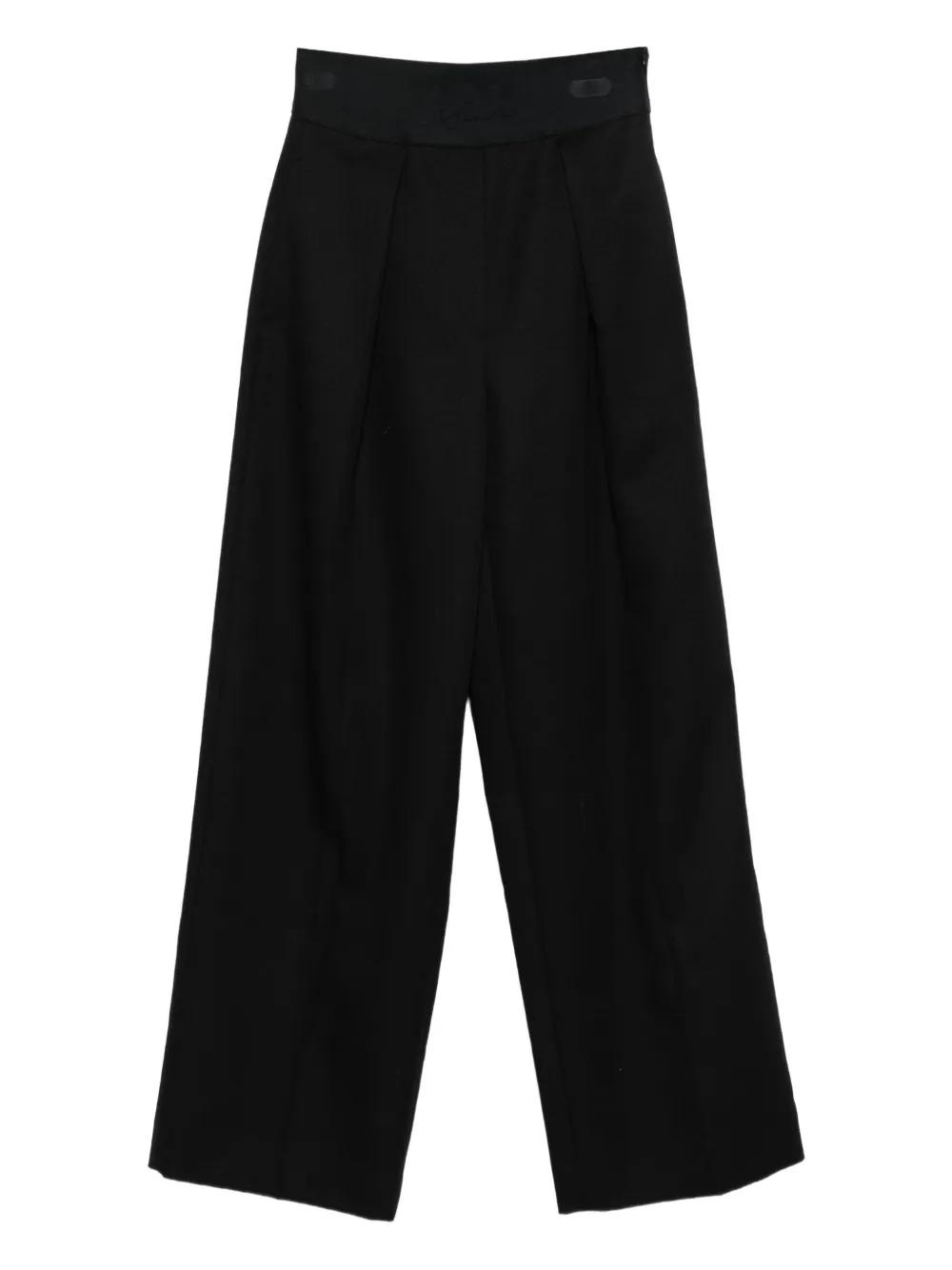 black organic wool belt loops ankle zips tailored cut concealed front fastening rear flap pocket rear welt pocket