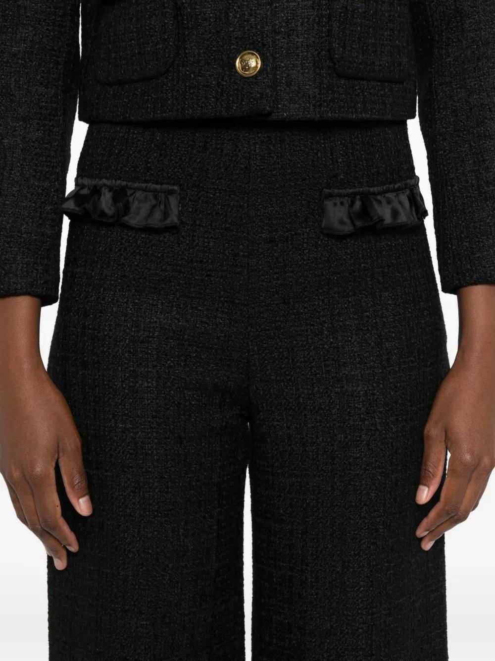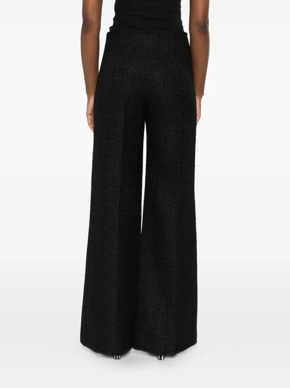 black organic wool belt loops ankle zips tailored cut concealed front fastening rear flap pocket rear welt pocket