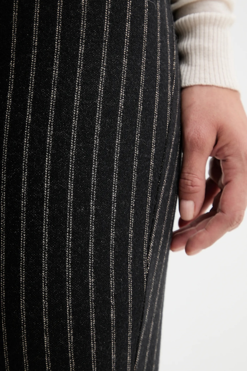 - Szeroka nogawka. - Elastyczna listwa w pasie. - Wzór w pasy. - Szerokość w pasie: 33,5 cm. - Szerokość w biodrach: 36 cm. - Wysokość stanu: 26 cm. - Szerokość nogawki na dole: 21 cm. - Szerokość nogawki: 25 cm. - Długość wewnętrzna nogawki: 85 cm. - Wymiary podane dla rozmiaru: S.