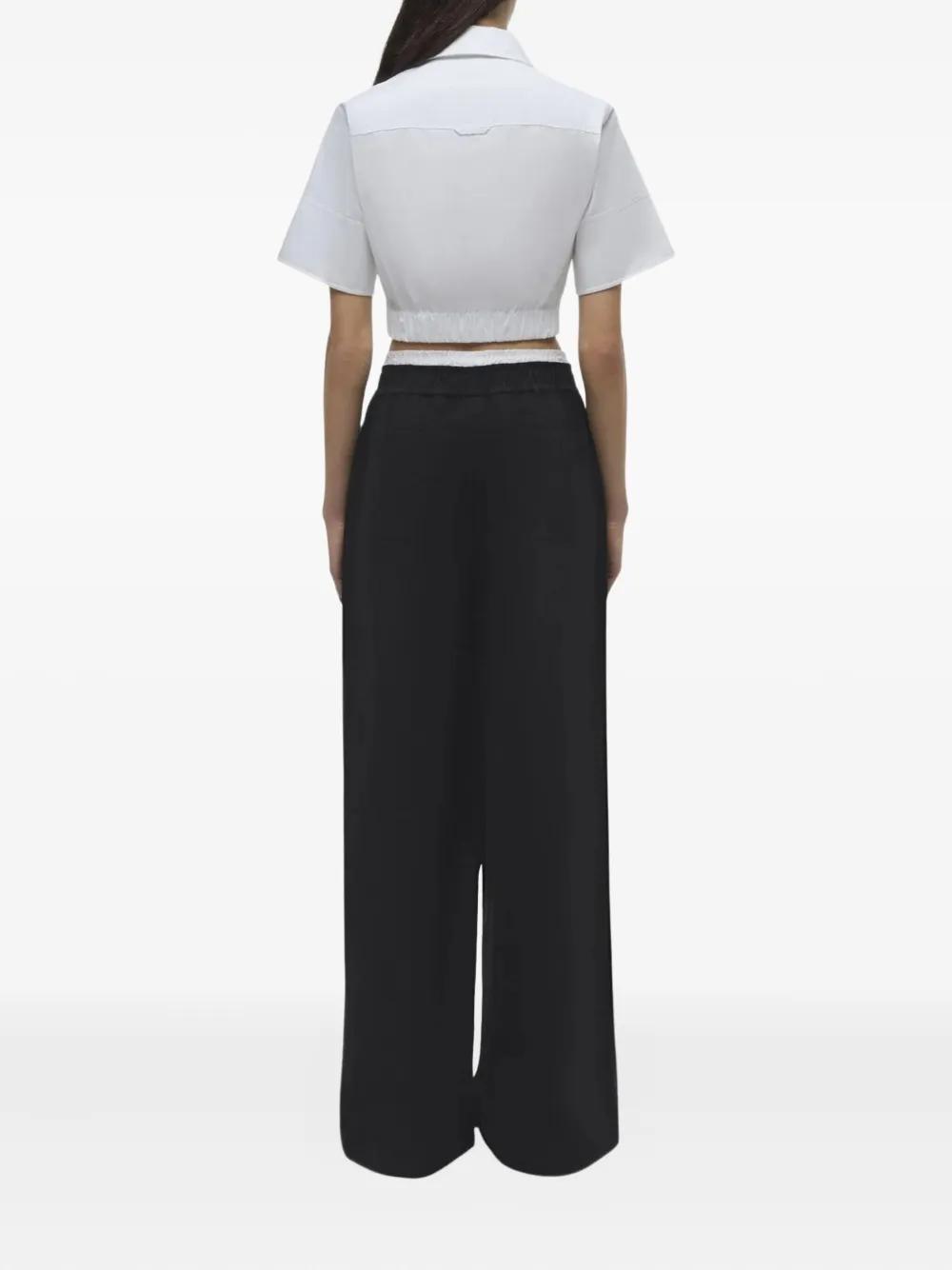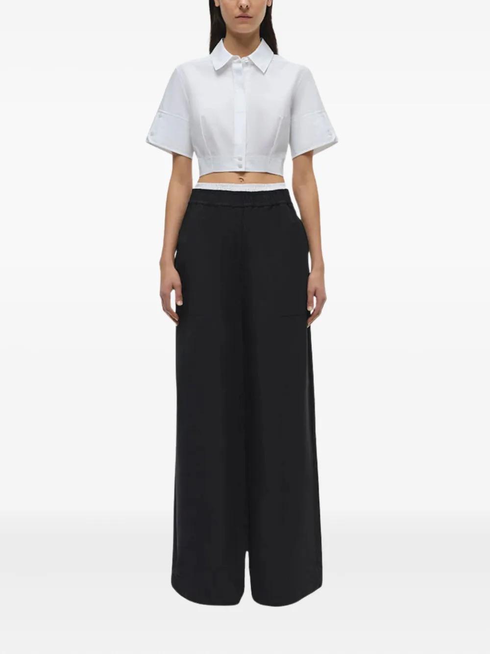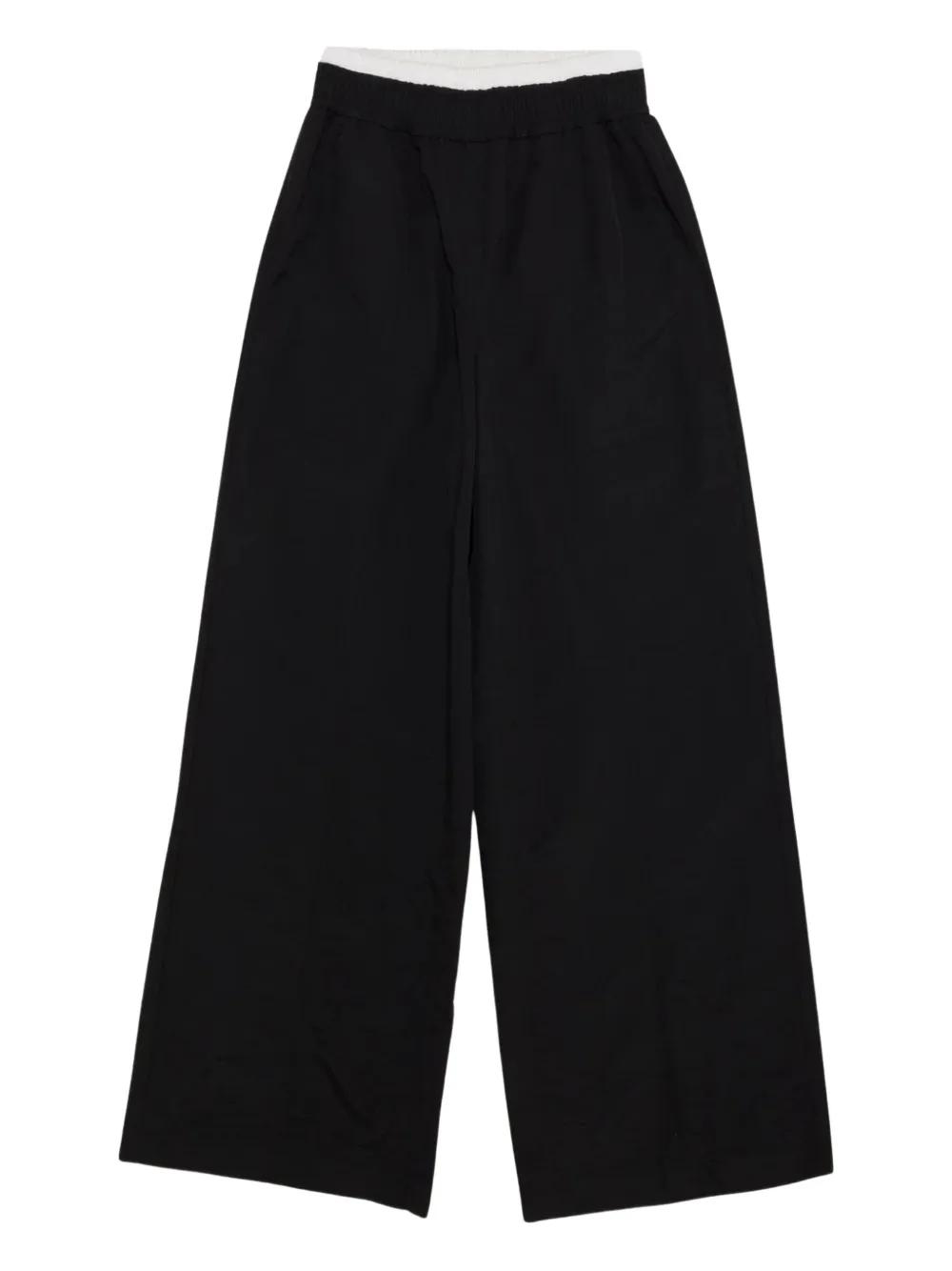 black velvet finish elasticated waistband two diagonal pockets to the sides wide leg