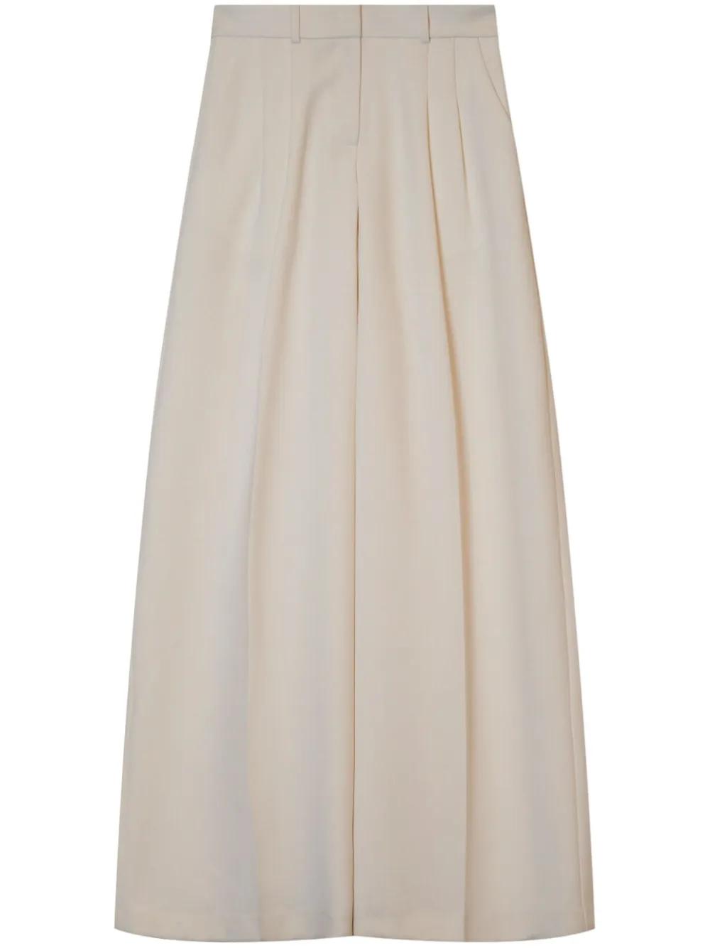 cream white pleat detailing high-waisted belt loops hook and eye fastening two side inset pockets