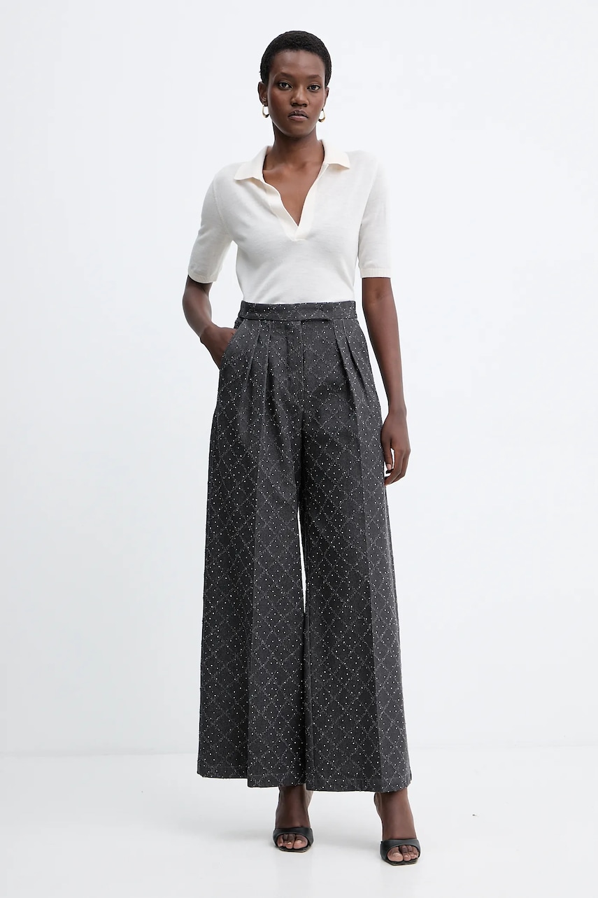 Simona Corsellini spodnie bawełniane damskie kolor szary szerokie high waist A25CPPA01001