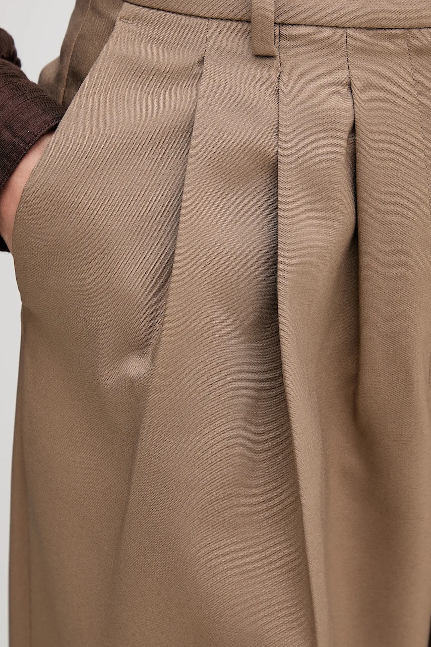 Sisley spodnie damskie kolor brązowy fason cygaretki high waist 4V99LF07S