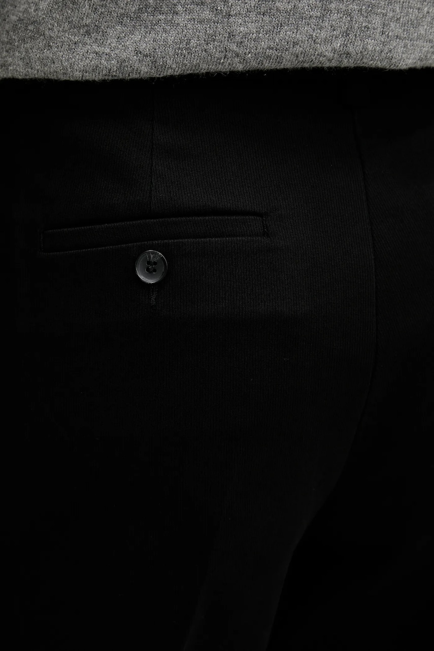 - Spodnie luźne w okolicy bioder i ud. - Model z regularną talią i zapięciem na suwak, guzik i haftkę. - Model z nogawkami o długości 7/8. - Prosta nogawka na całej długości. - Nogawka zaprasowana w kantkę. - Dwie wsuwane kieszenie boczne. - Dwie zapinane na guziki kieszenie na pośladkach. - Cienka, lekko elastyczna tkanina. - Szerokość w pasie: 34 cm. - Szerokość w biodrach: 48 cm. - Wysokość stanu: 25 cm. - Szerokość nogawki na dole: 21 cm. - Szerokość nogawki: 23 cm. - Długość zewnętrzna nogawki: 92 cm. - Wymiary podane dla rozmiaru: 36.