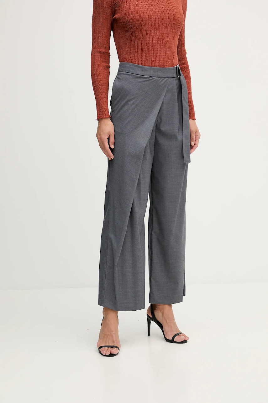 Sisley spodnie damskie kolor szary szerokie high waist 4K2KLF07K
