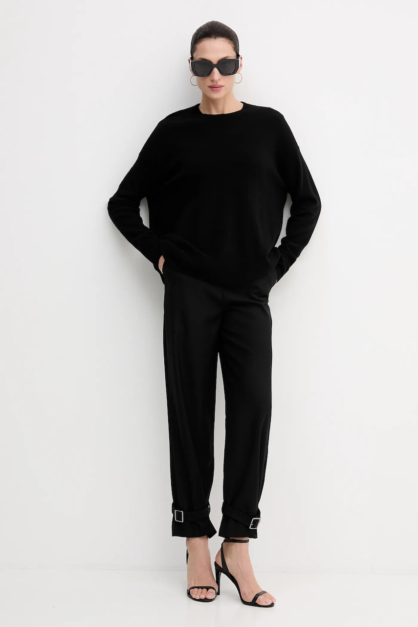 Sisley spodnie z domieszką wełny damskie kolor czarny proste high waist 41FQLF080