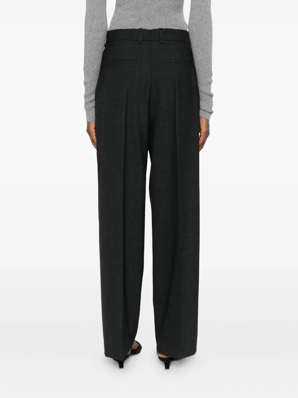 pale yellow pleat detail front button fastening belt loops side welt pockets