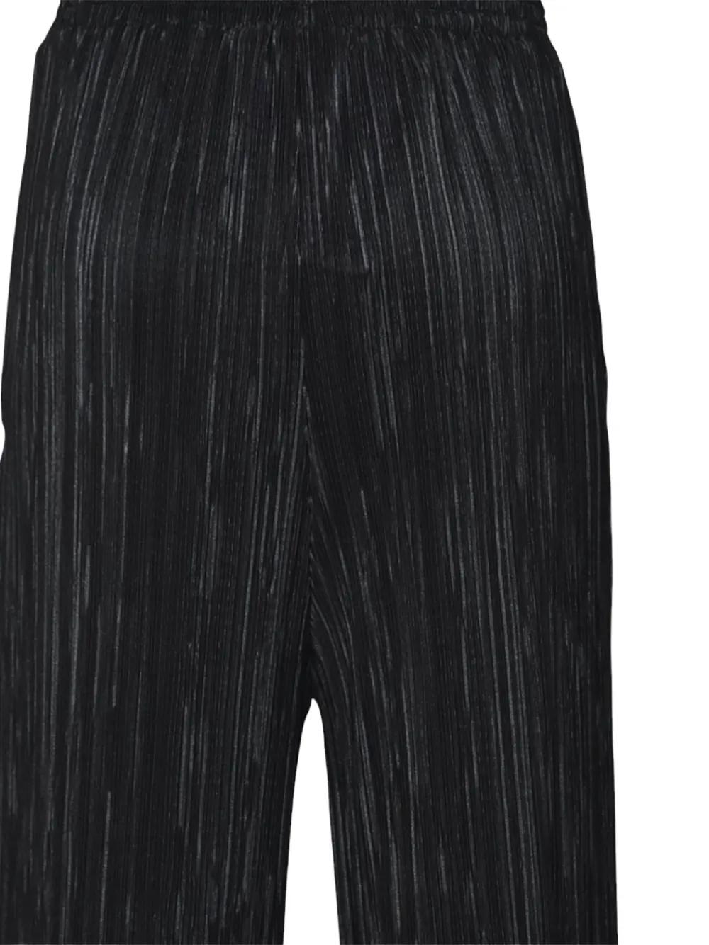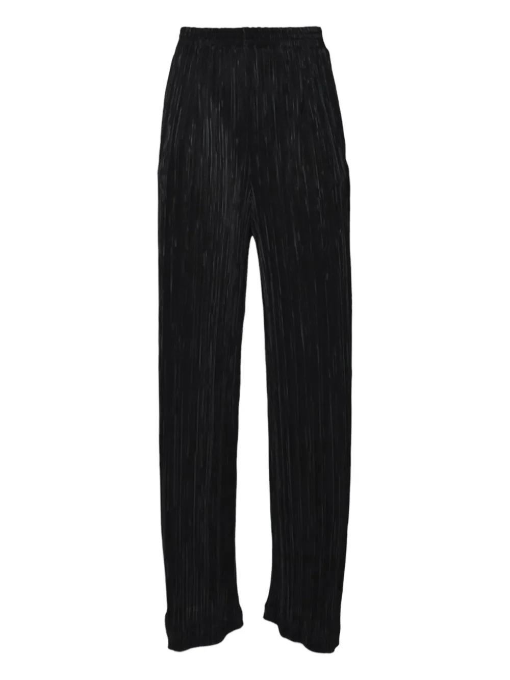 black elasticated waistband vertical pleats side pockets fluid drape