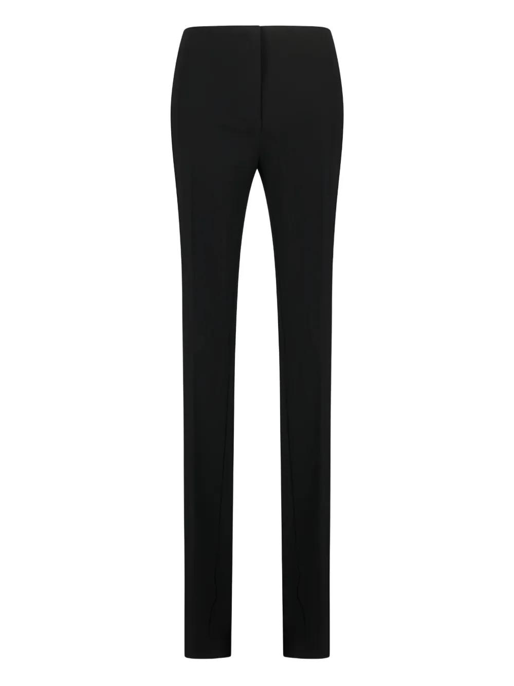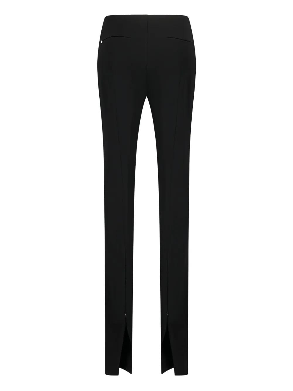 black jersey fabric centre-front fastening straight leg side seam detail split hem