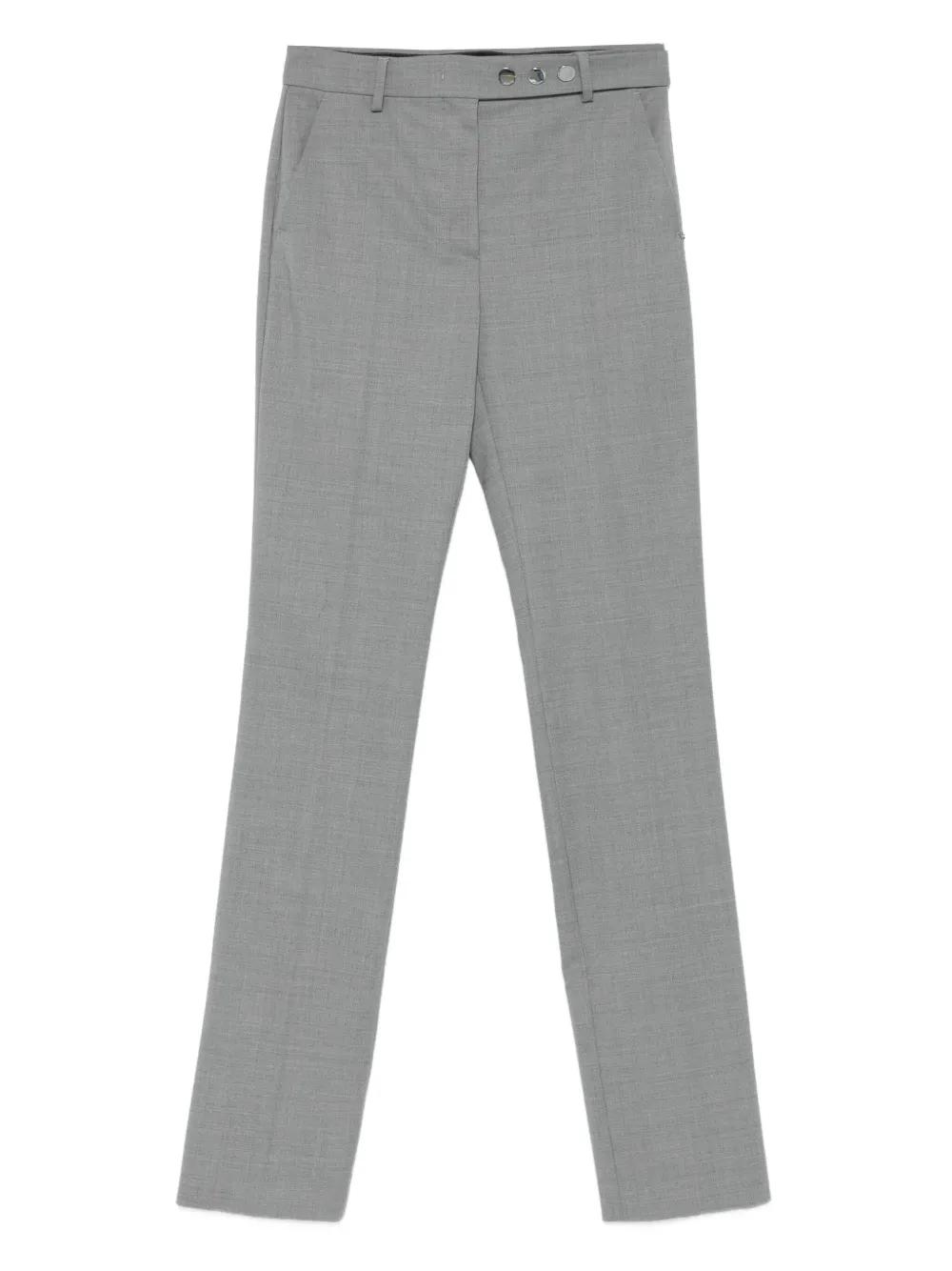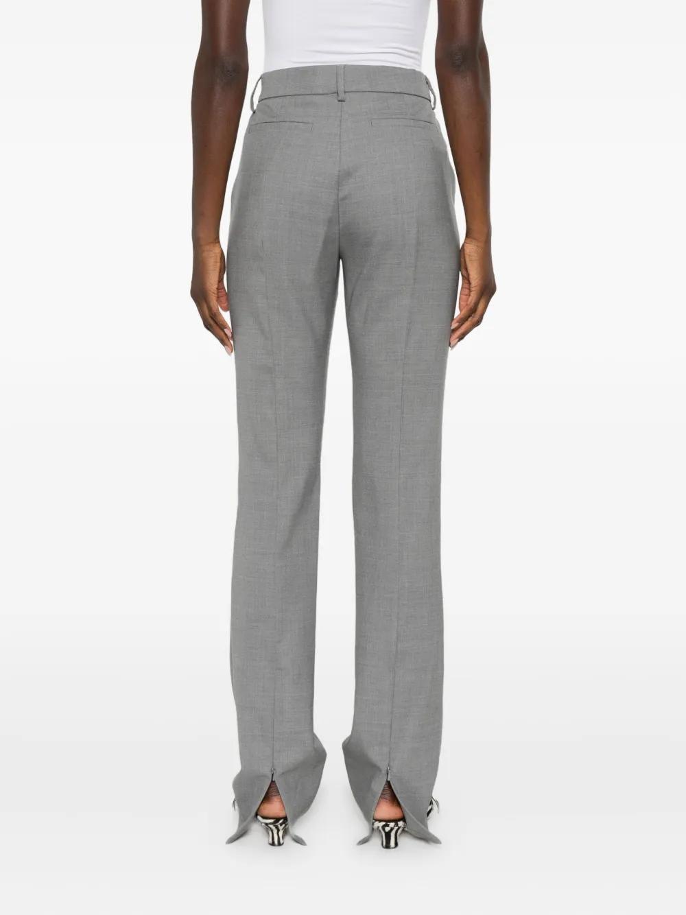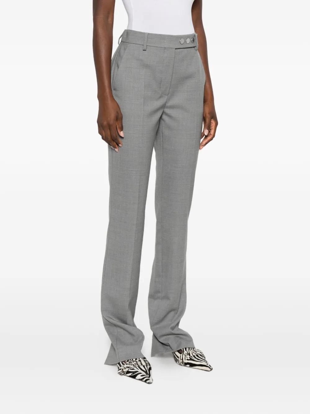 grey virgin wool concealed front fastening belt loops side slit pockets rear welt pockets