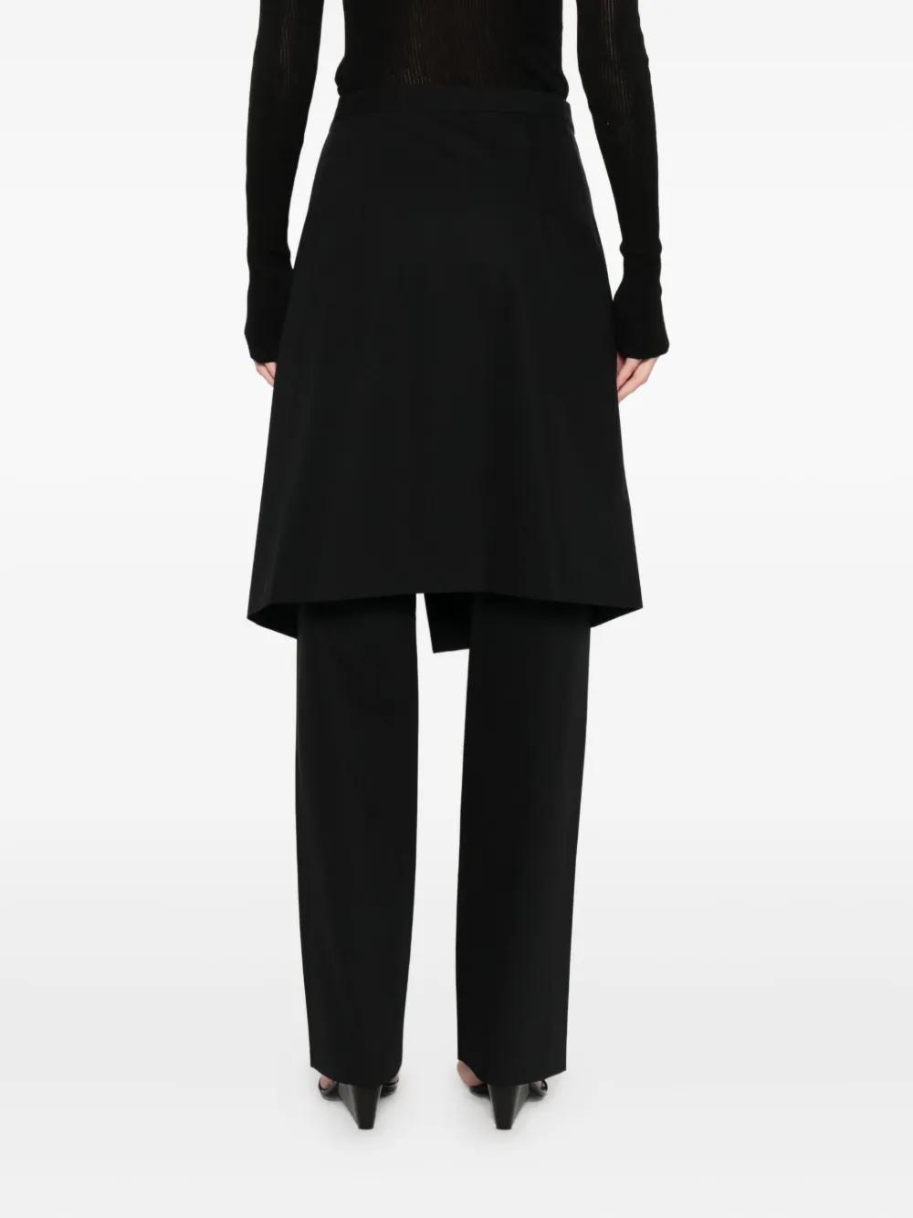 black virgin wool blend low-rise pleat detailing embroidered logo at the leg concealed front fastening two side inset pockets wide leg cotton lining