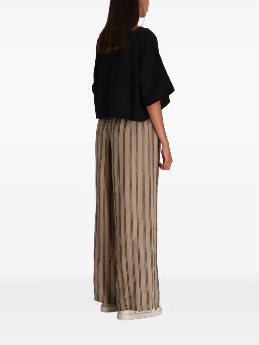 brown vertical striped pattern elasticated waist linen