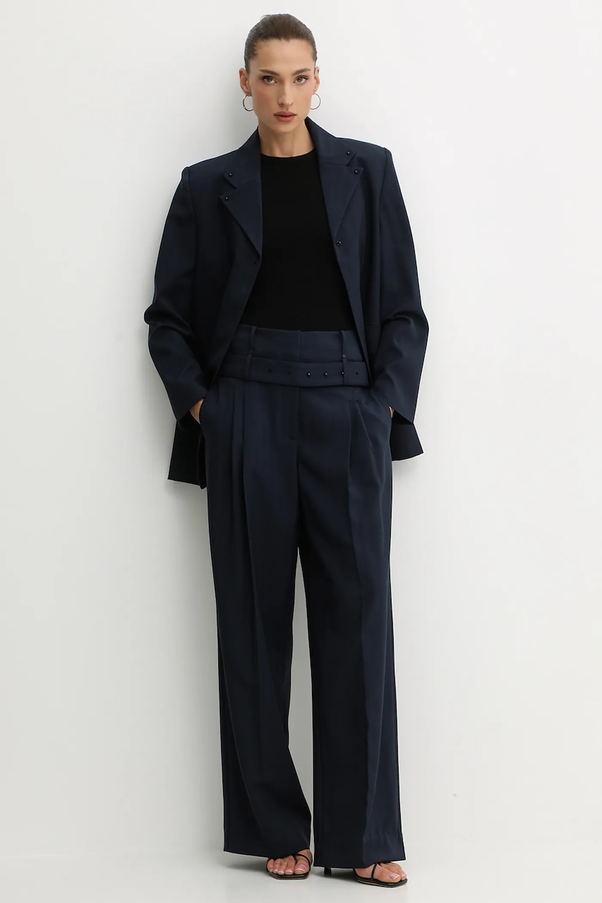 Stine Goya spodnie 0 damskie kolor granatowy szerokie high waist SG-AW25-P113-2435