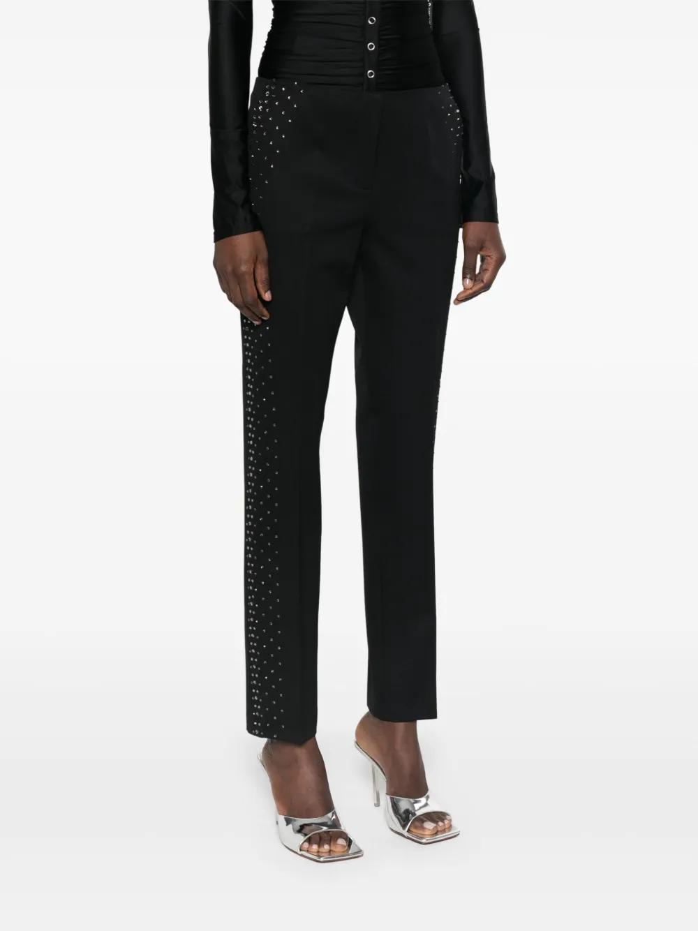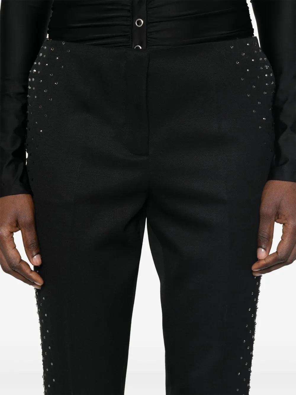 black concealed front button, hook and zip fastening two side inset pockets two rear jetted pockets pressed crease