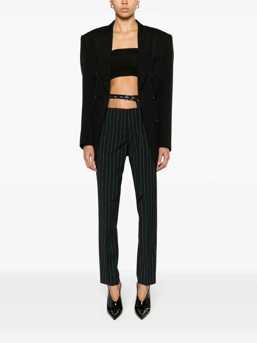 The Attico cut-out pinstriped tailored trousers - Blue