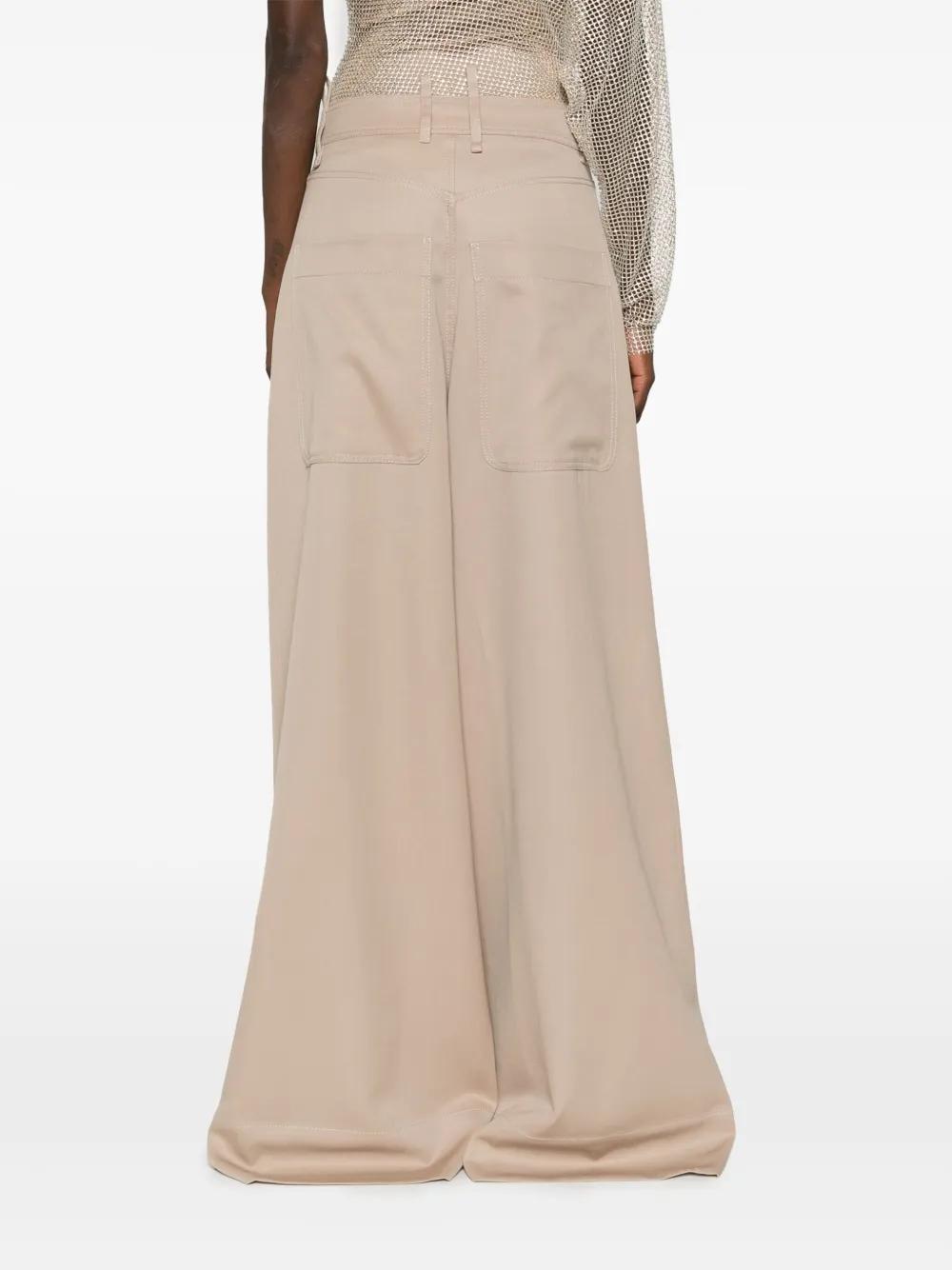 beige virgin wool twill weave tonal stitching pleat detailing pintuck detailing strap detailing ring embellishment branded zip puller short front zip fastening belt loops high-waisted wide leg classic five pockets straight hem