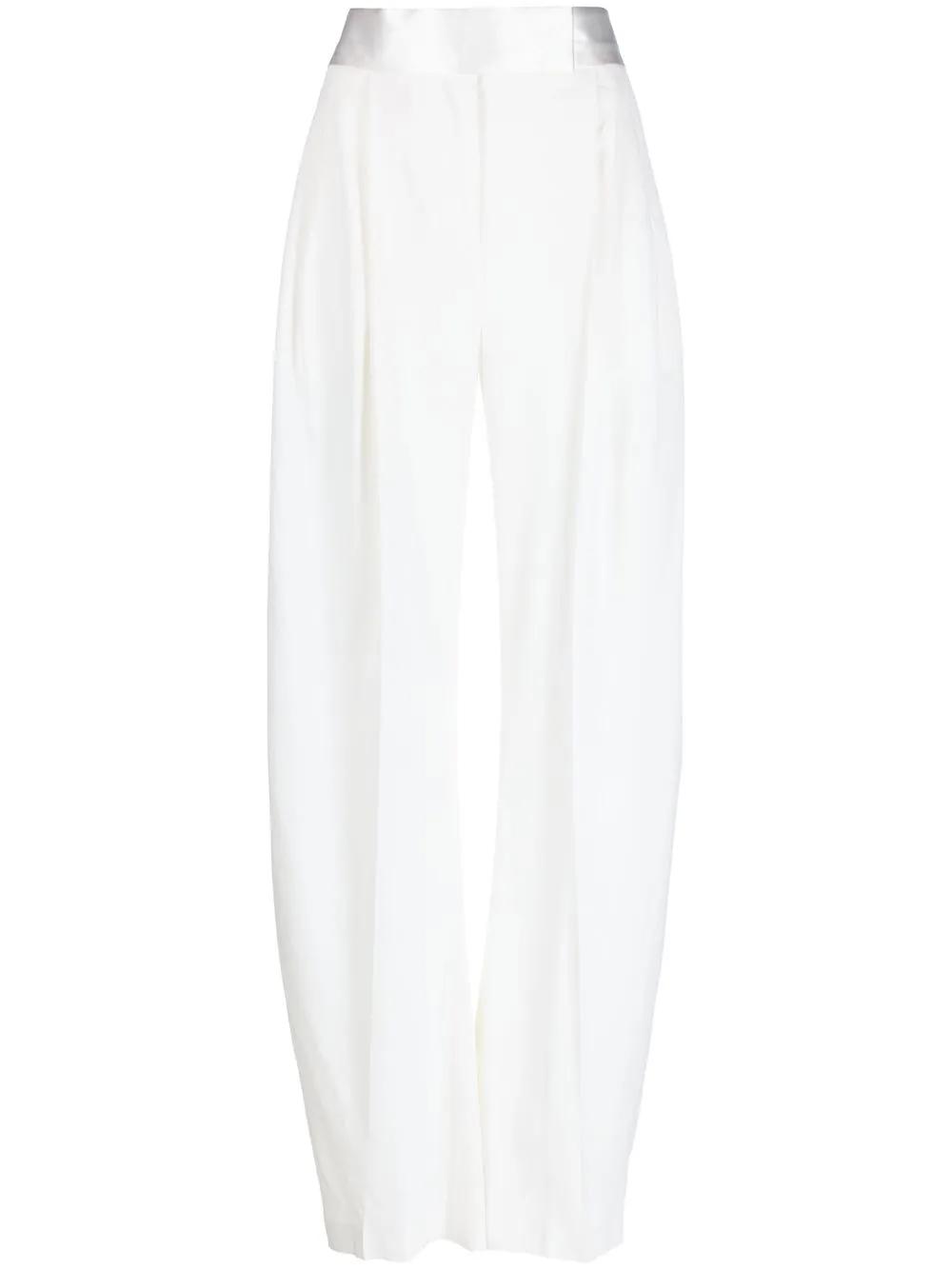 milk white silk virgin wool blend tapered leg pressed crease two rear welt pockets