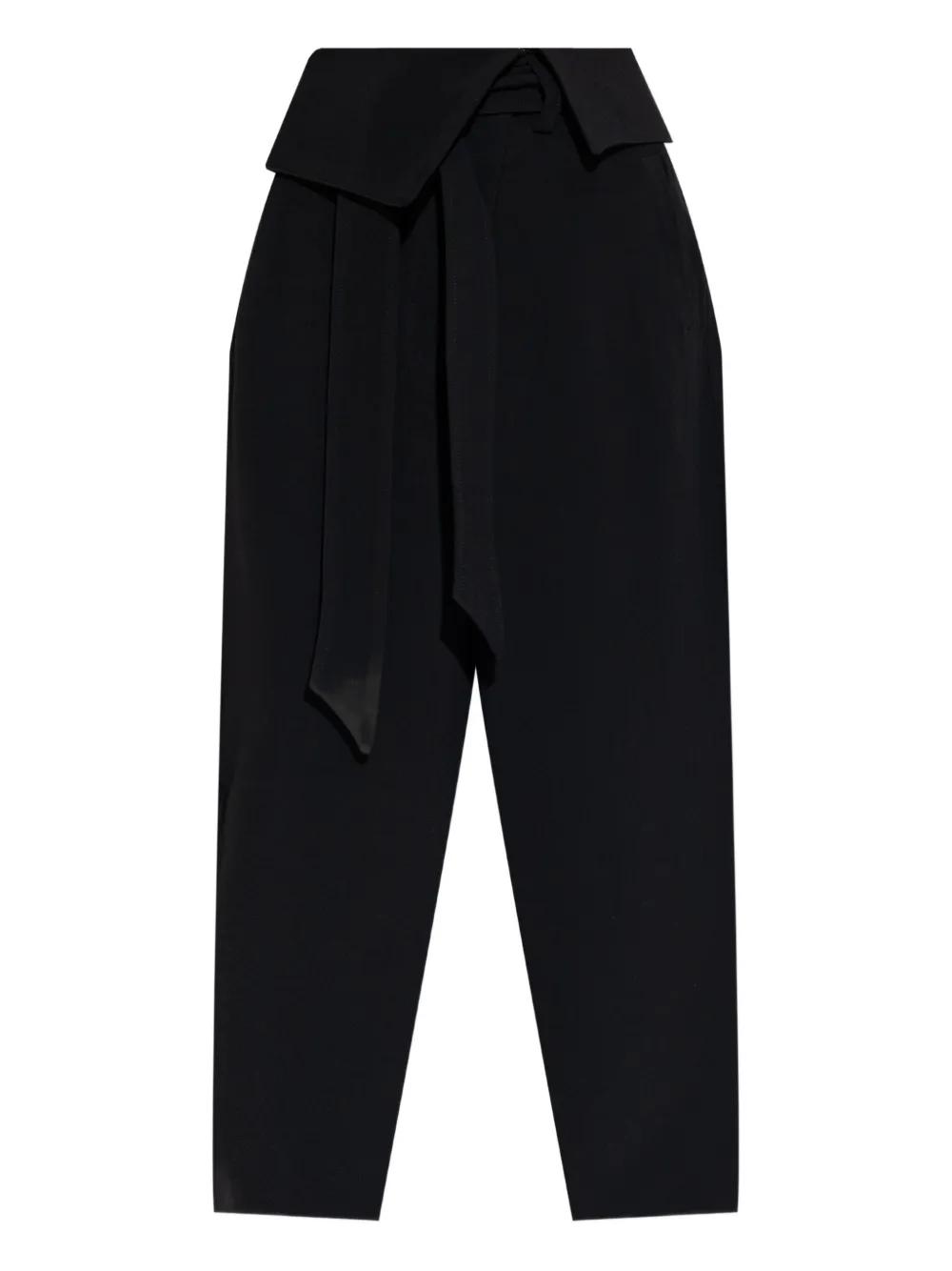 black wrap-effect waist self-tie belt silver-tone logo plaque