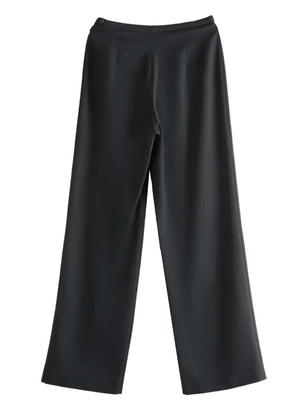 coffee brown concealed front button, hook and zip fastening two side slit pockets two rear welt pockets straight leg