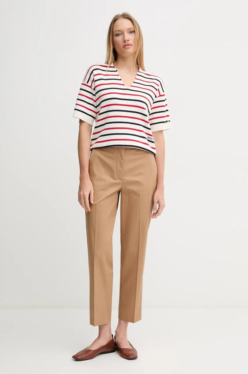 Tommy Hilfiger spodnie damskie kolor brązowy proste high waist WW0WW40504