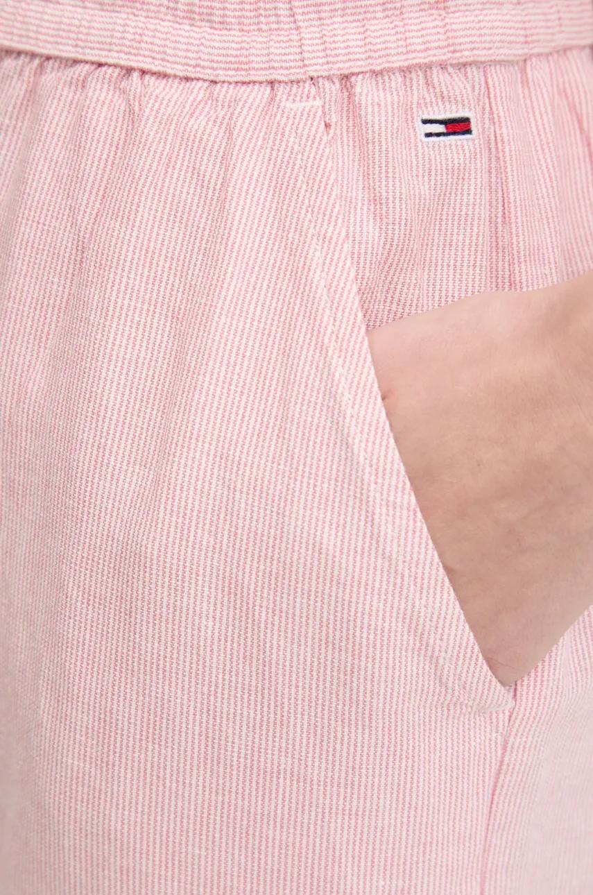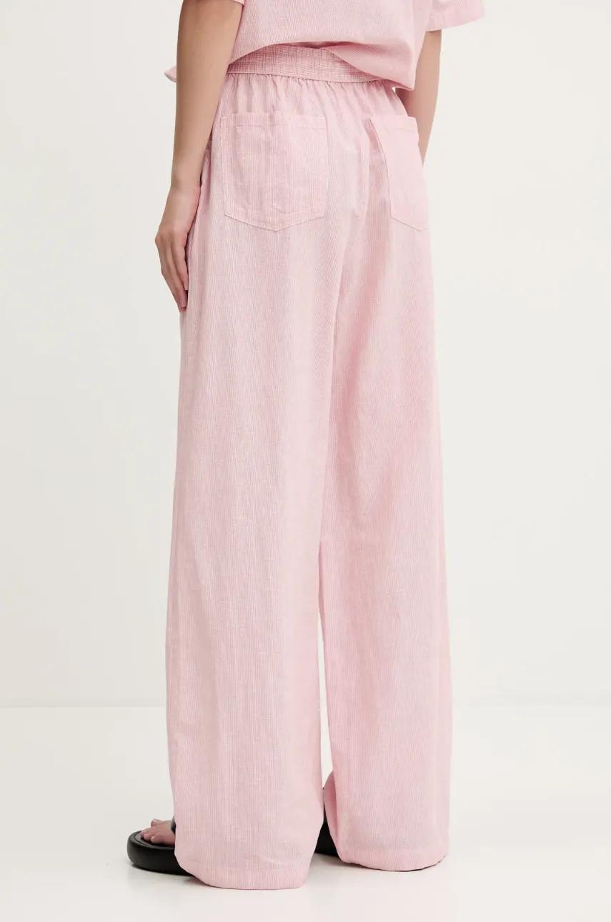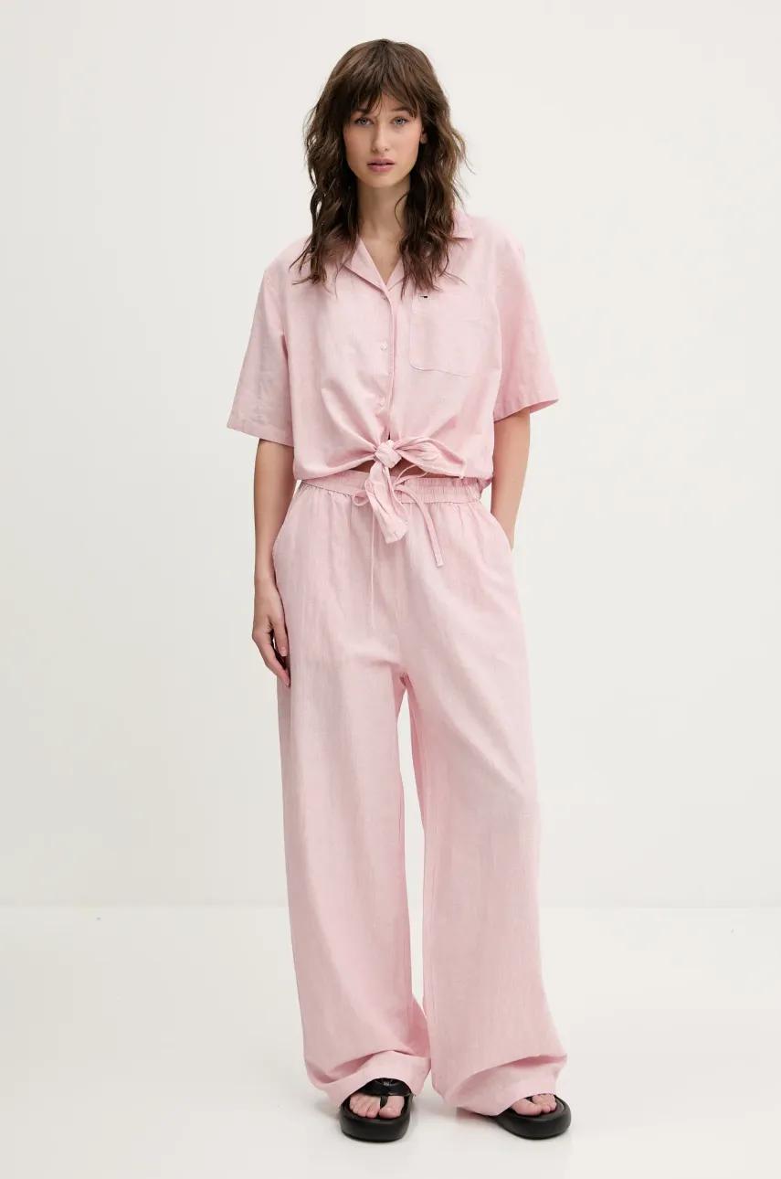 Tommy Jeans spodnie z domieszką lnu damskie kolor różowy szerokie high waist DW0DW20352