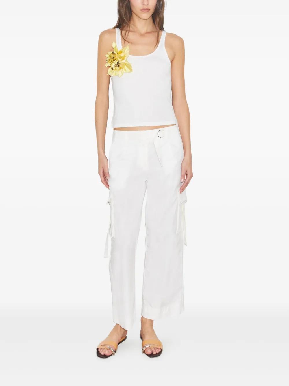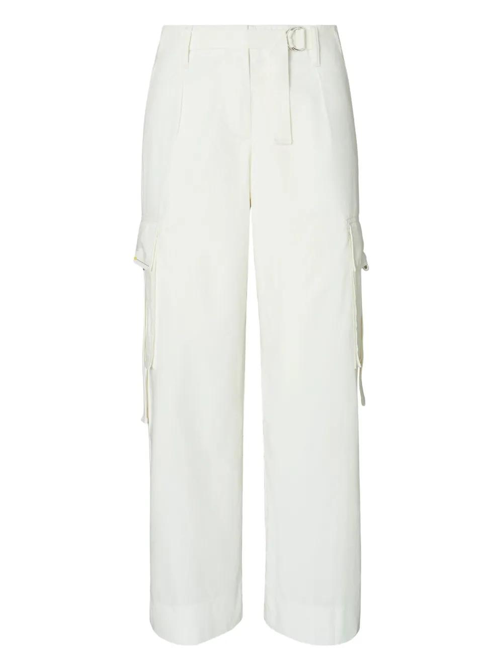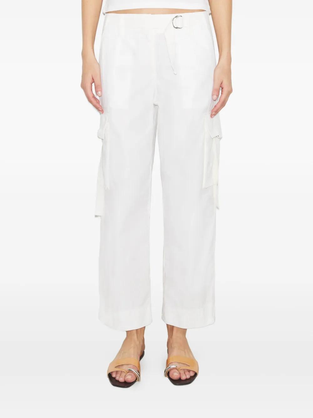 cream white belt loops side cargo pockets adjustable drawstring details wide leg design