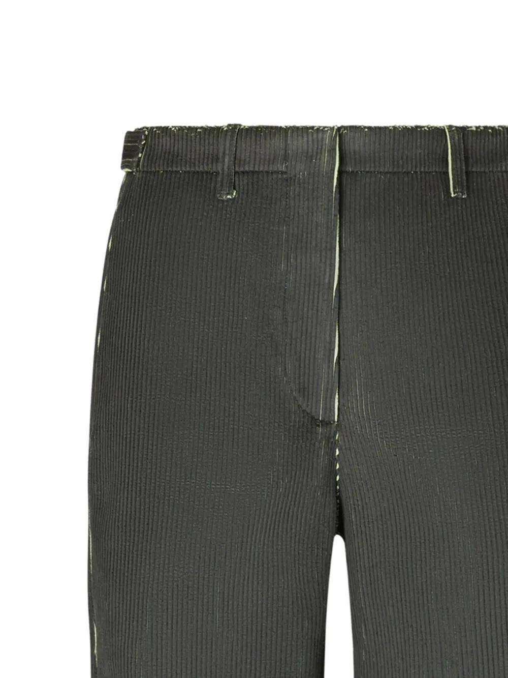 dark brown corduroy texture low waist barrel leg belt loops five pockets