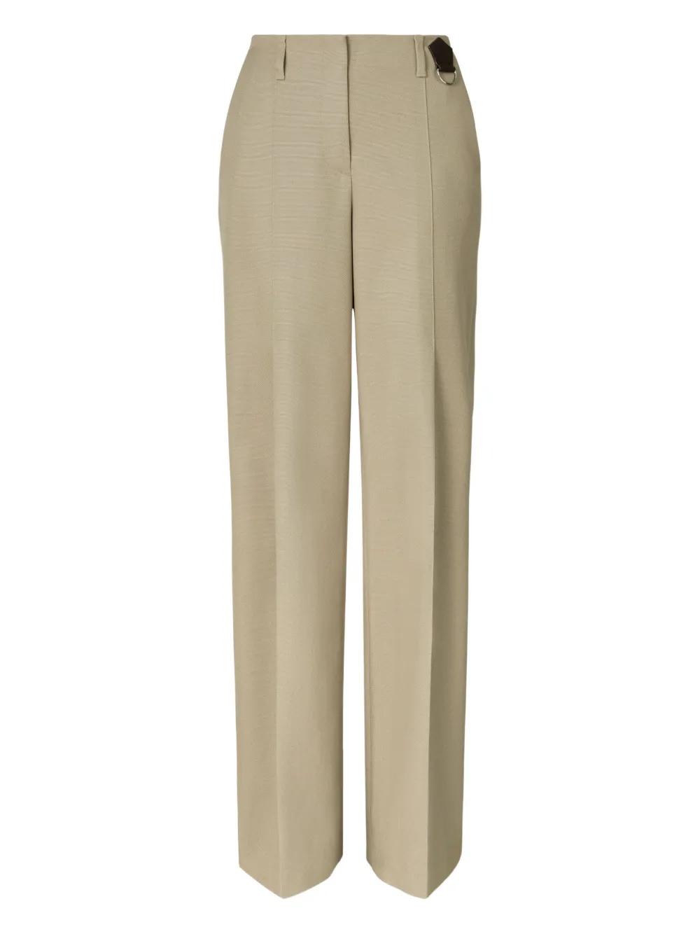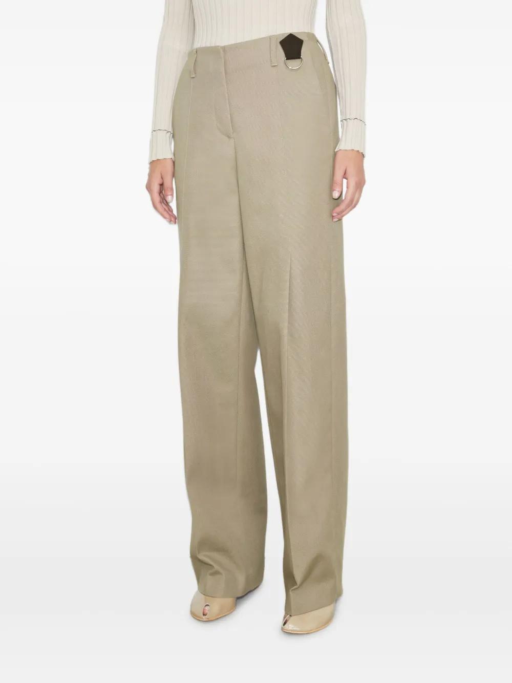 taupe-grey cotton centre-crease belt-lops silver-ring detail rear welt-buttoned pockets buckle-belt back detail