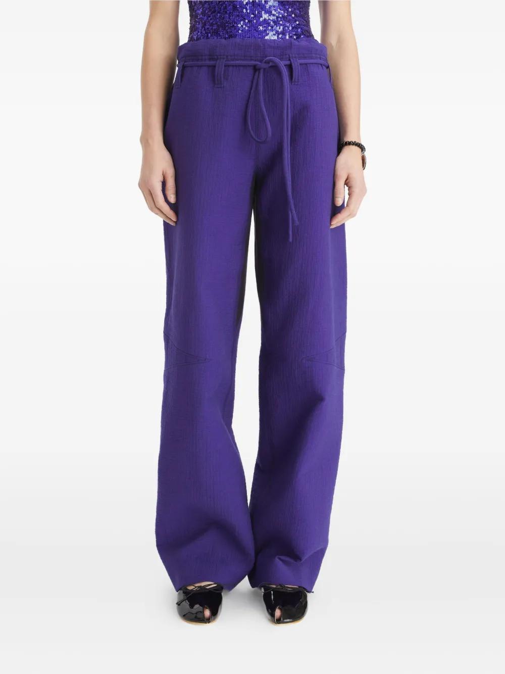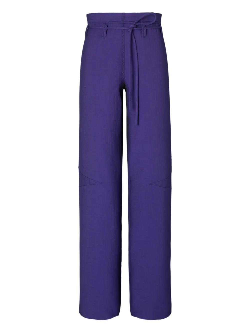 deep blue wide-leg design self-tie belt plissé effect tailored finish
