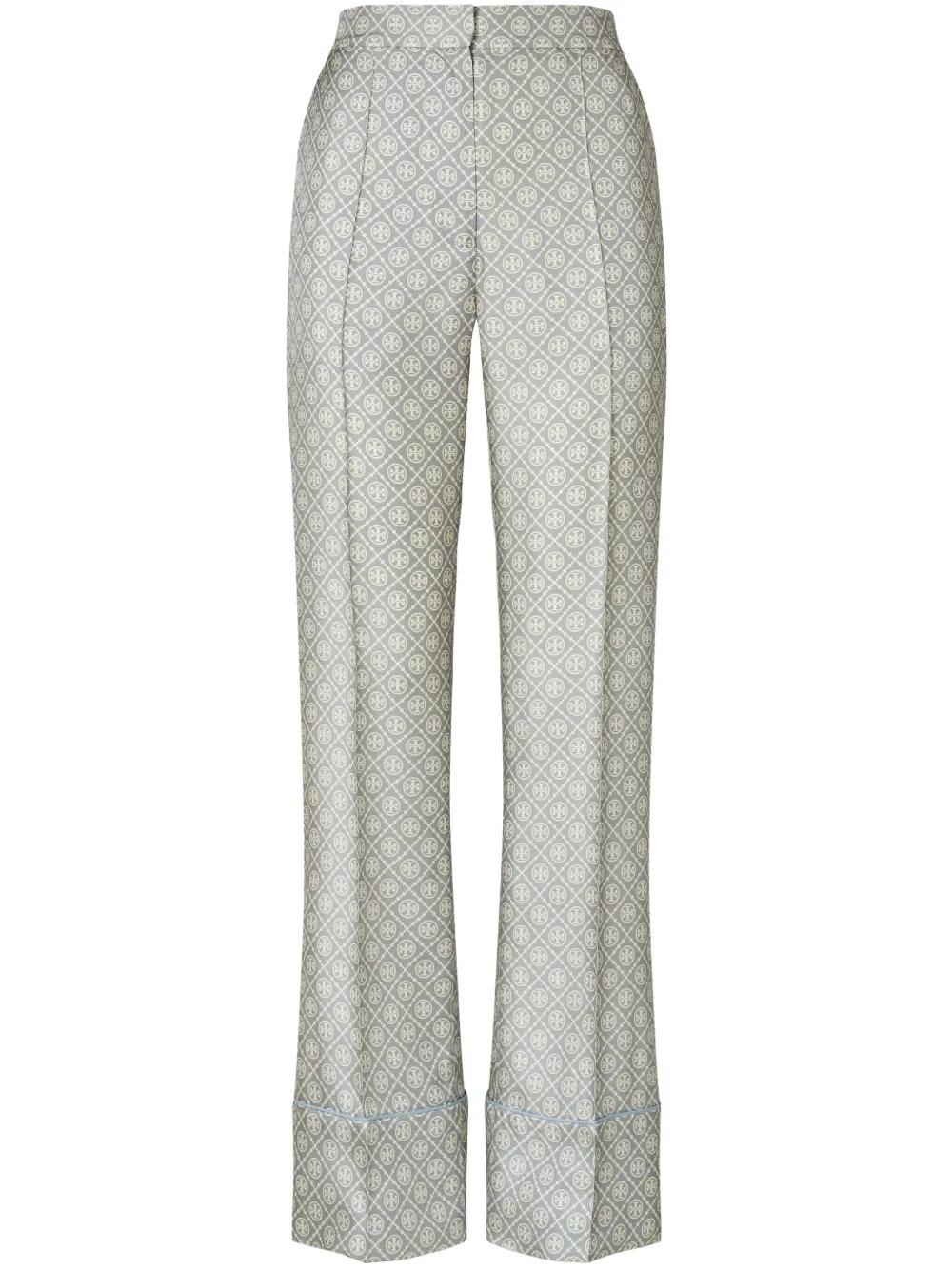 Tory Burch T Monogram-print silk trousers - Grey