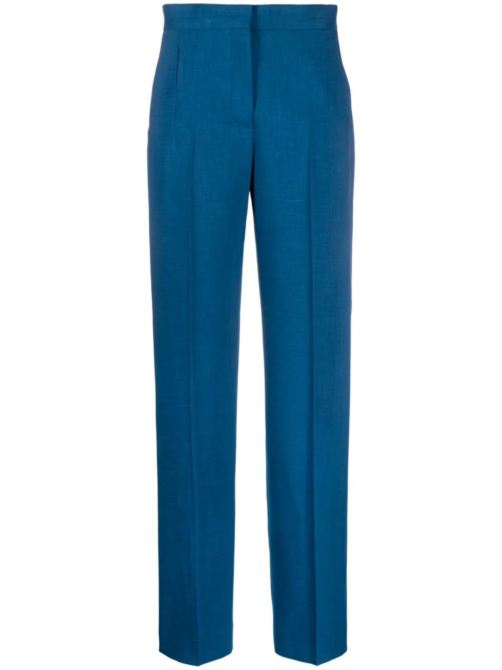 Ink blue mélange effect tailored cut high-waisted concealed front button, hook and zip fastening two diagonal pockets to the sides two rear welt pockets pressed crease