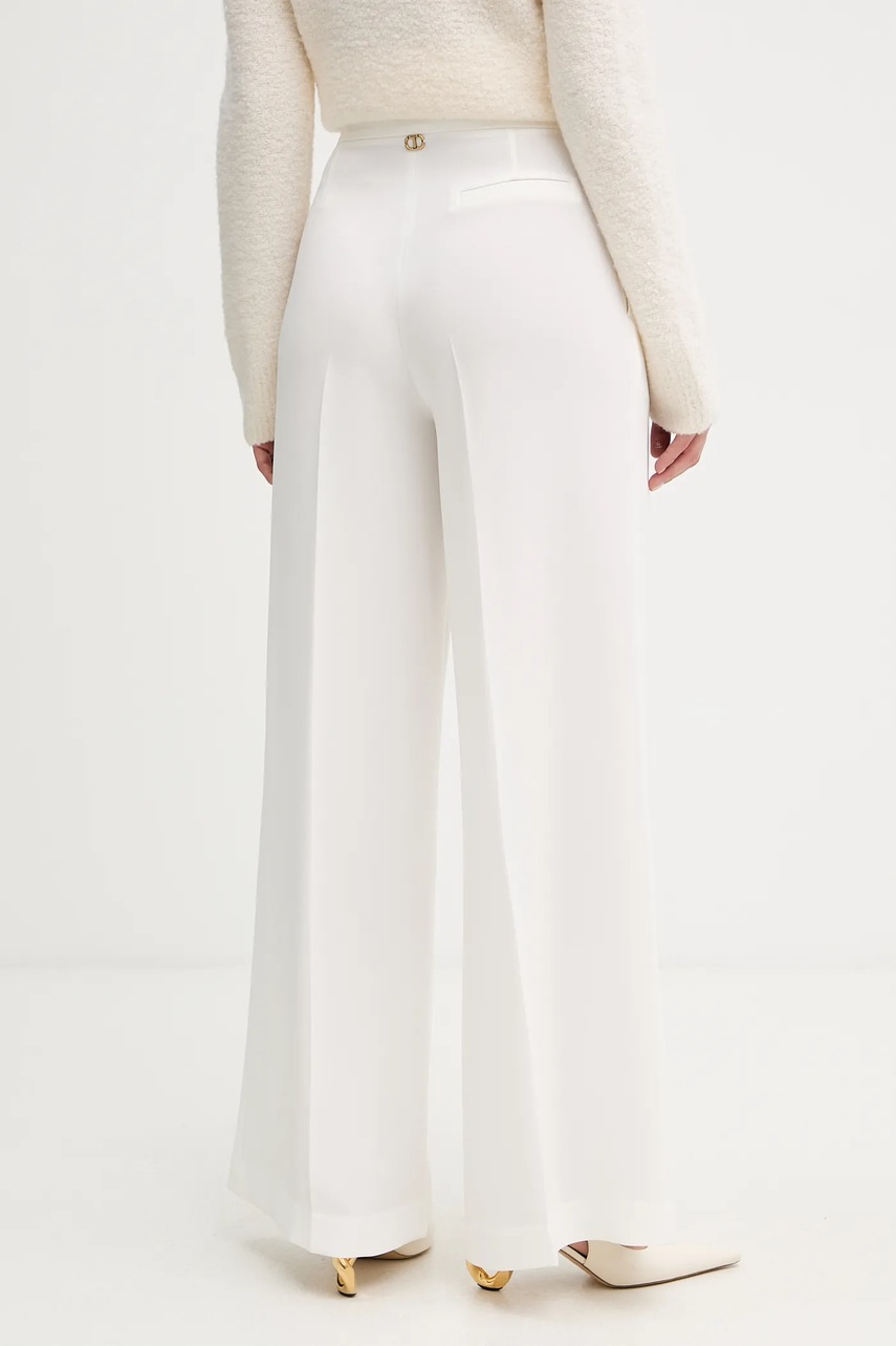 Twinset spodnie damskie kolor beżowy szerokie high waist 252TT2401