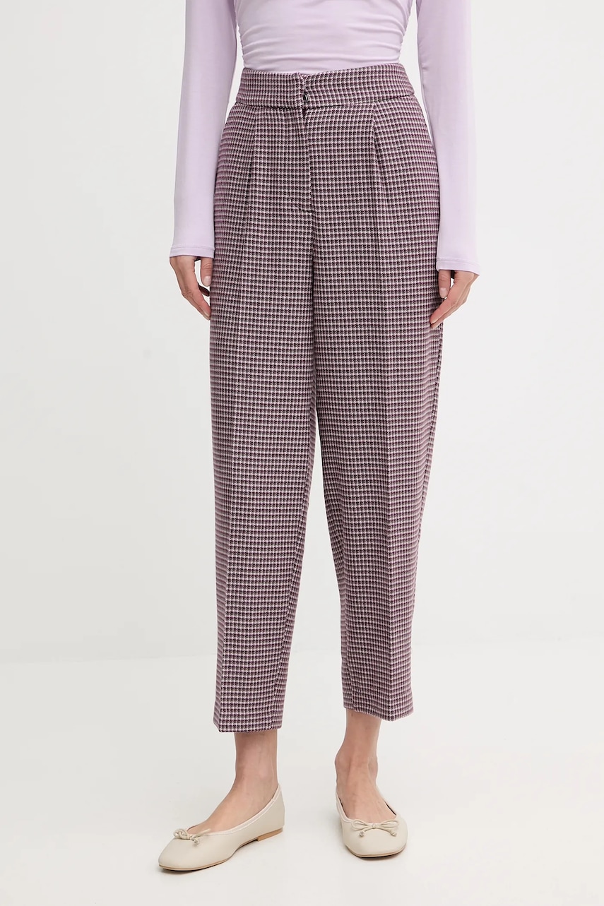 United Colors of Benetton spodnie damskie kolor bordowy proste high waist 44BWDF0AE