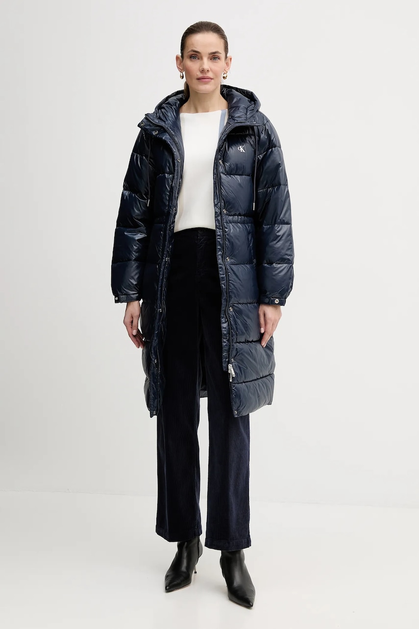 United Colors of Benetton spodnie sztruksowe kolor granatowy proste high waist 4HA2DF07I
