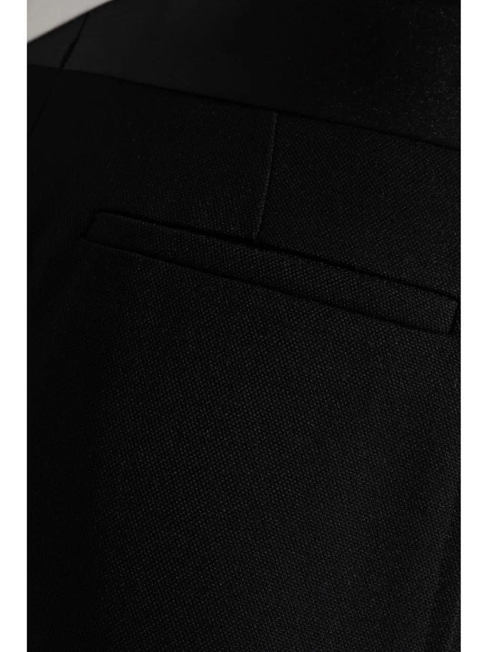 black concealed front fastening two side slit pockets pressed crease