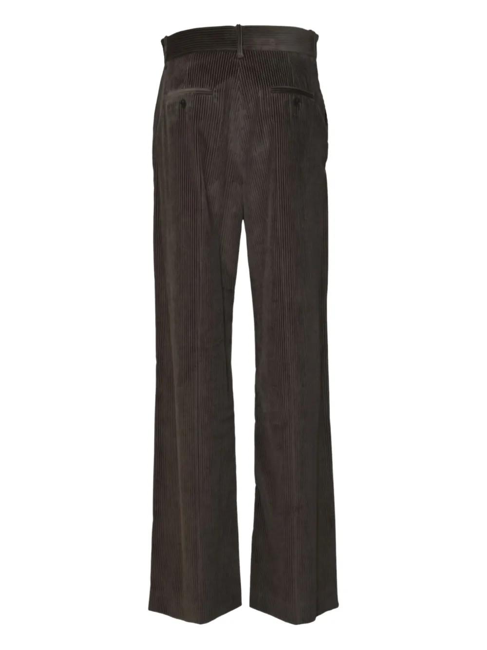 brown corduroy texture belt loops back welt pocket concealed fly fastening