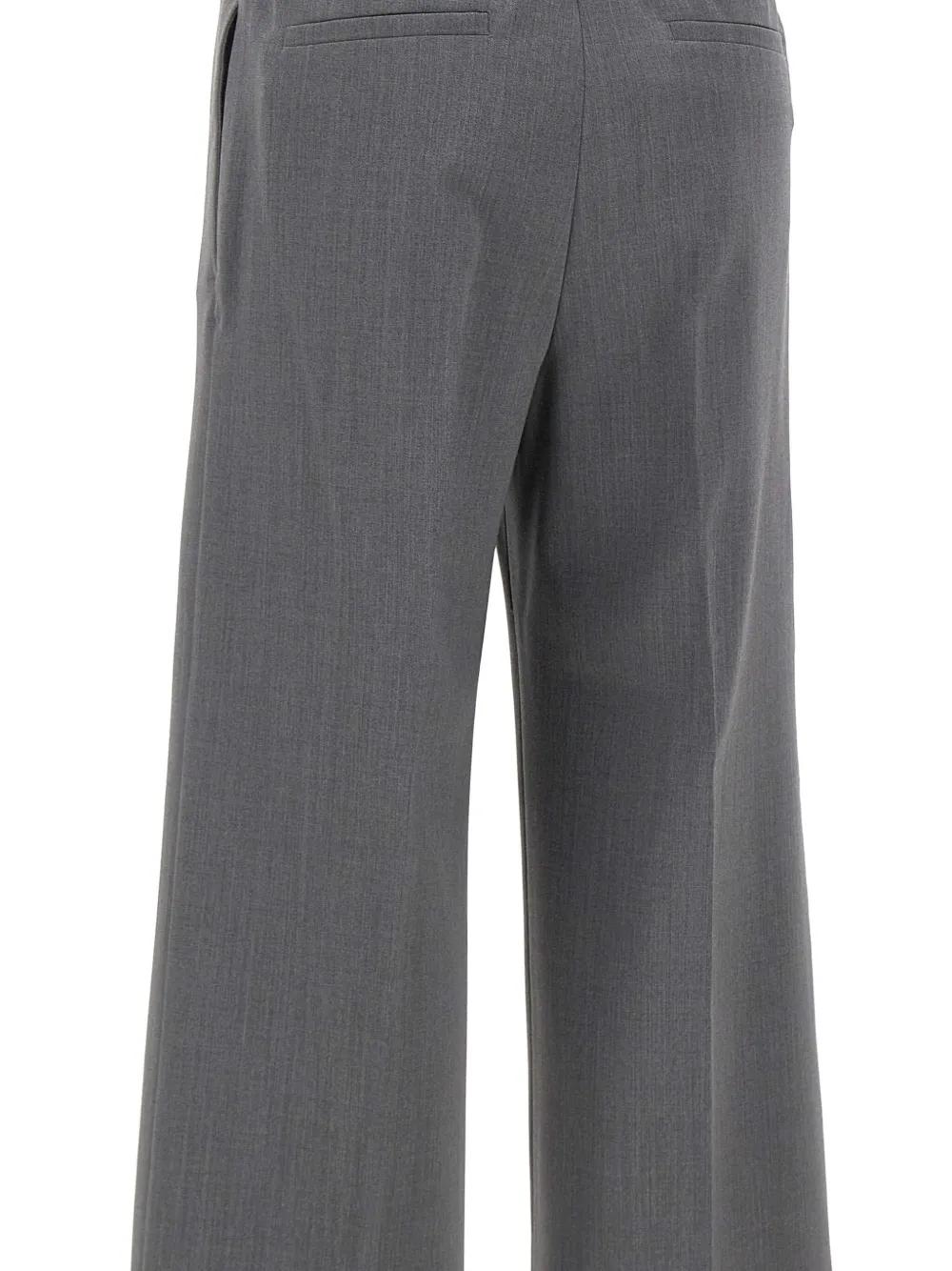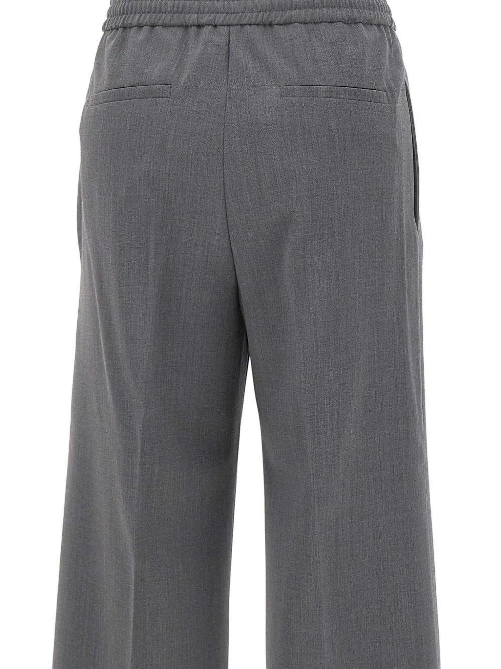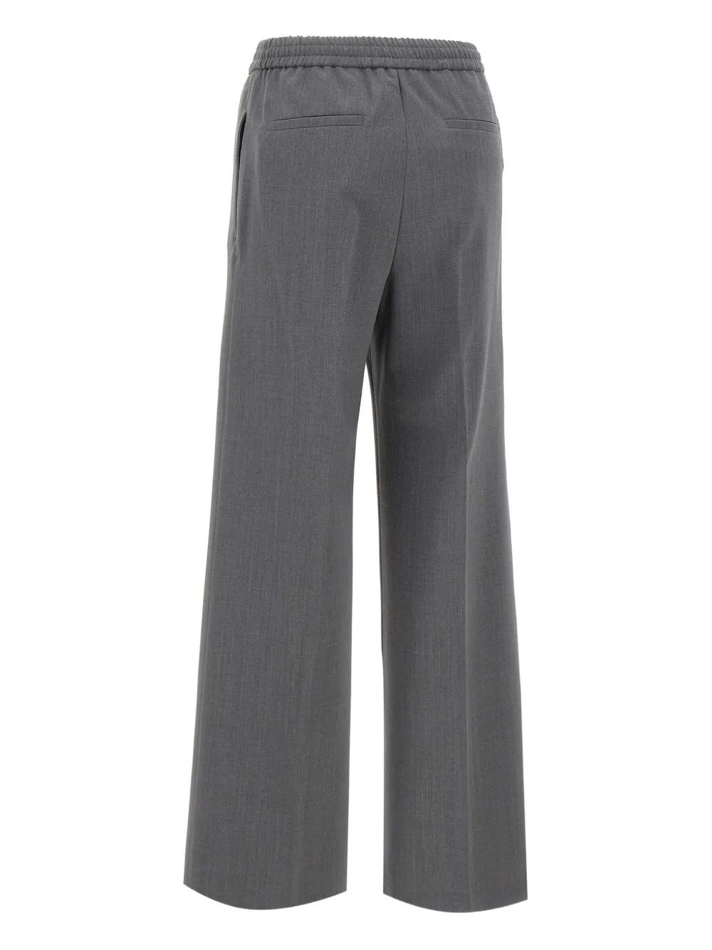 grey elasticated waistband drawstring fastening side welt pockets back pockets straight cut