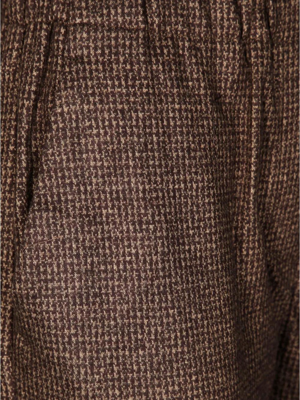brown elasticated waistband all-over checked pattern straight leg welt pockets