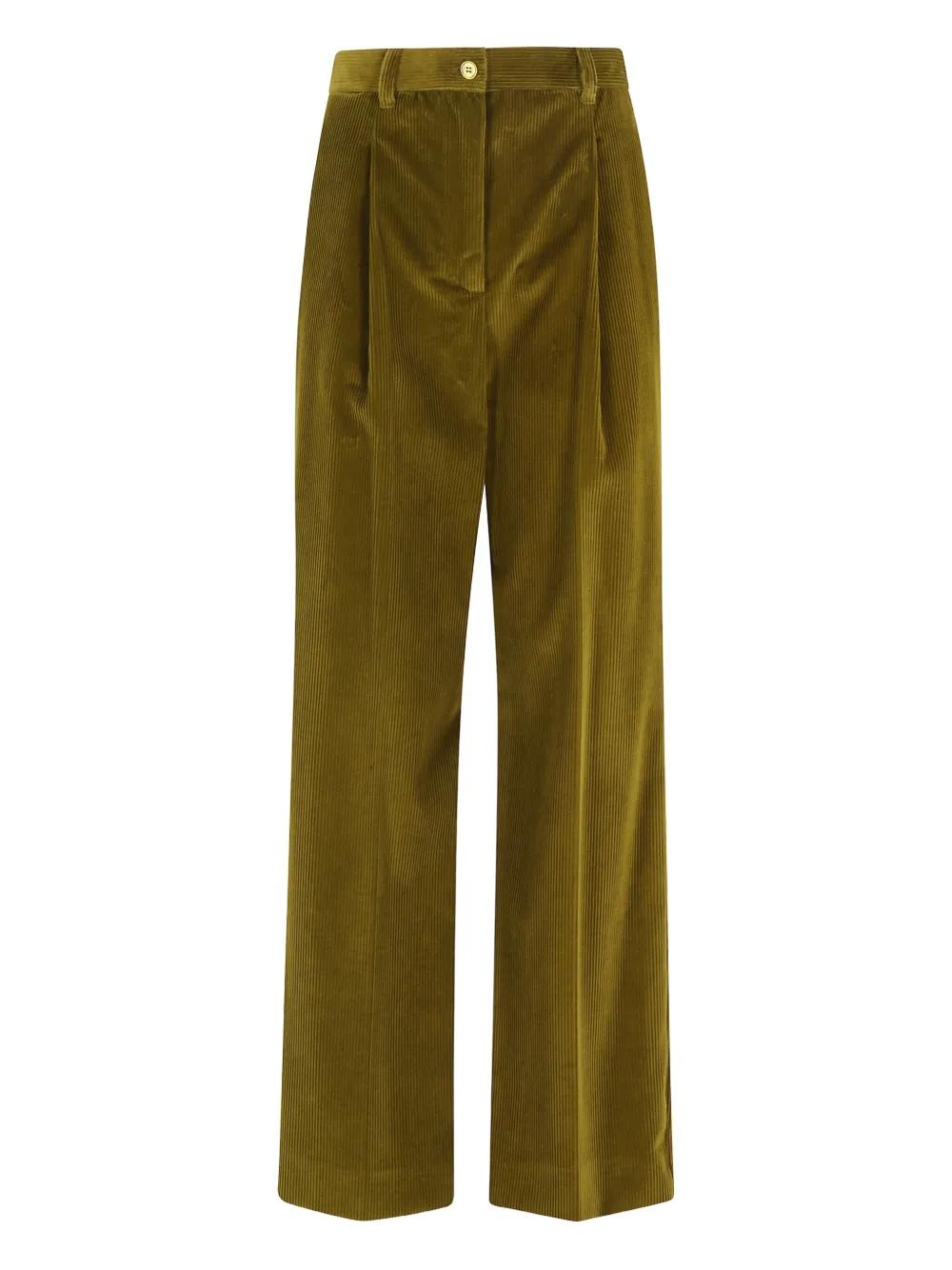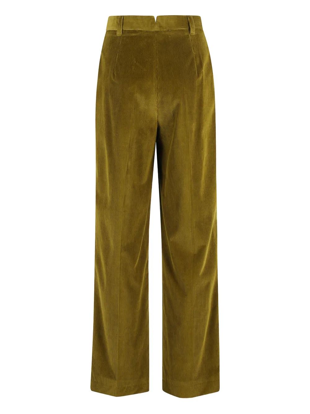 green corduroy texture pleated front button fastening straight leg