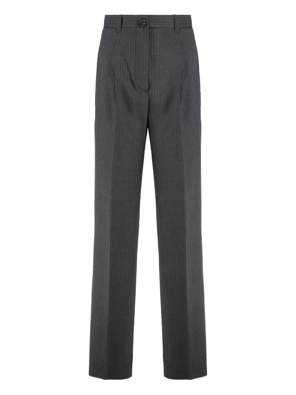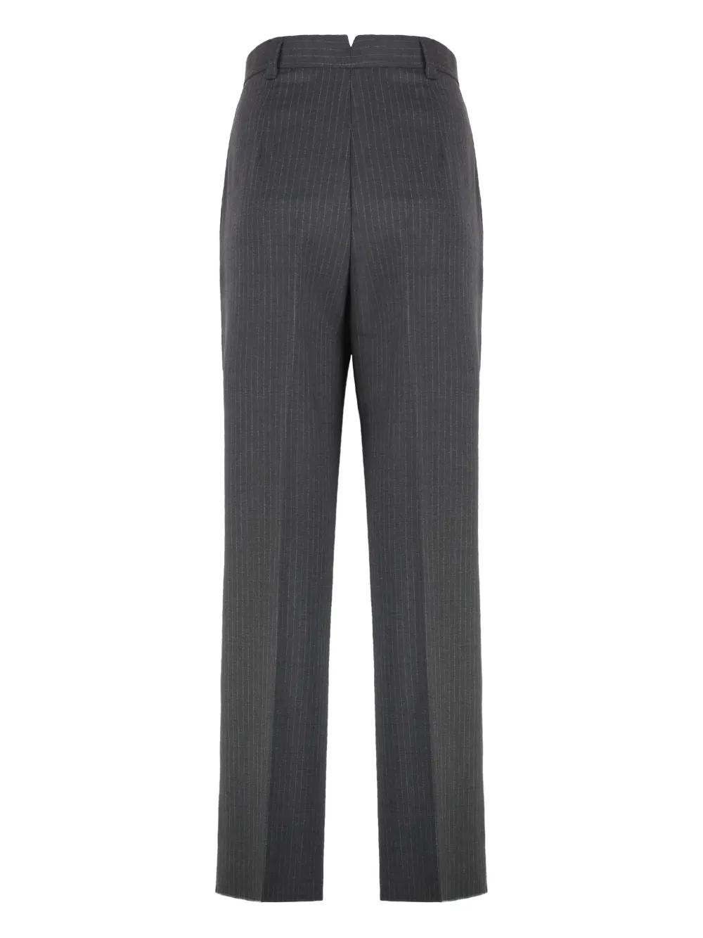 grey virgin wool pinstripe pattern button fastening belt loops front pleats
