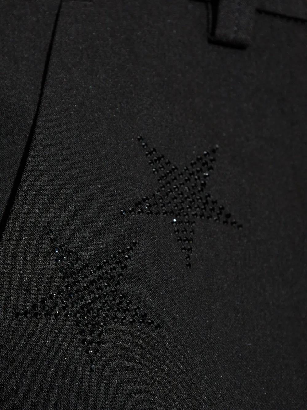 black stretch-jersey logo embellishment tailored design concealed front fastening two rear welt pockets belt loops