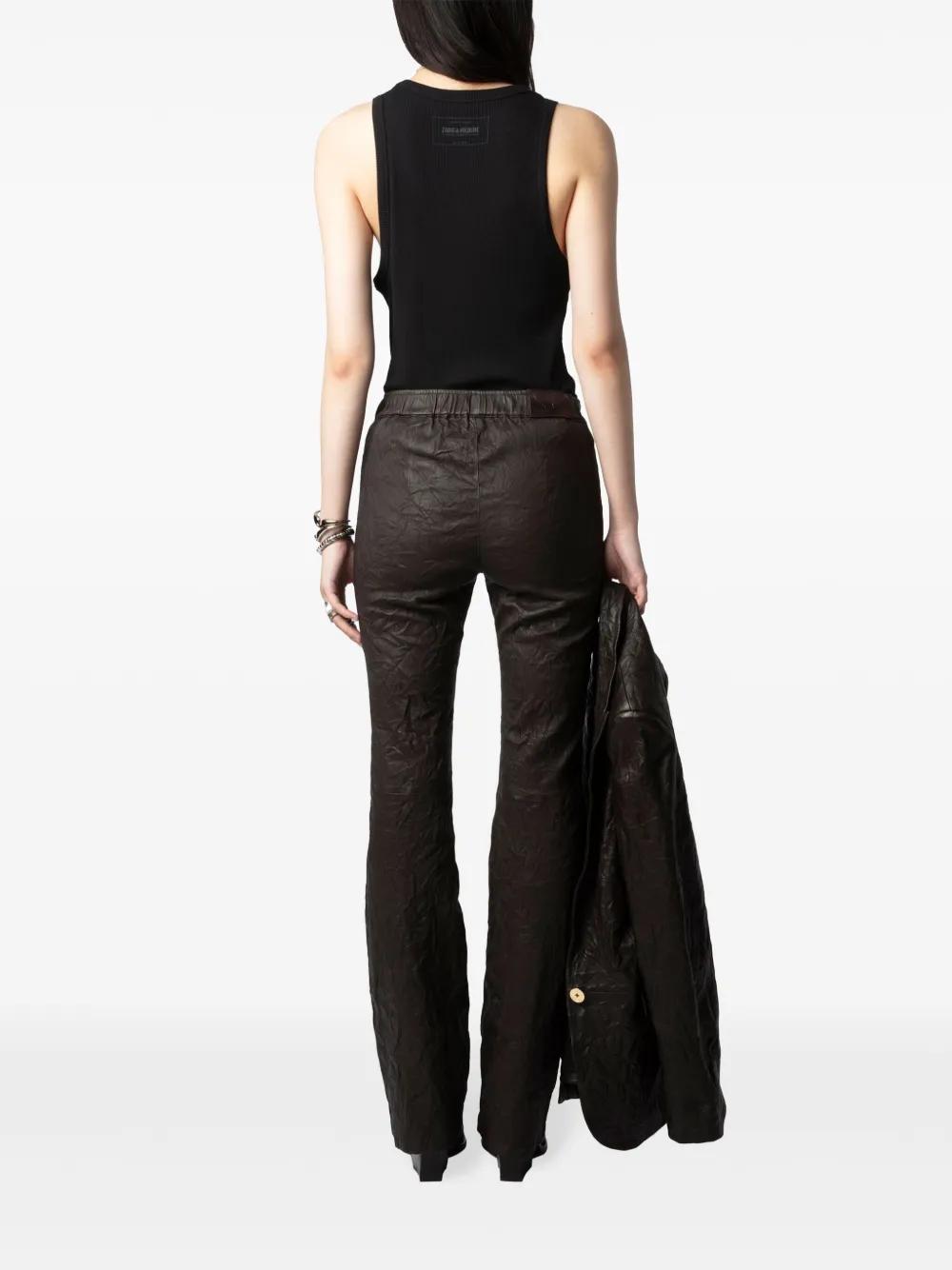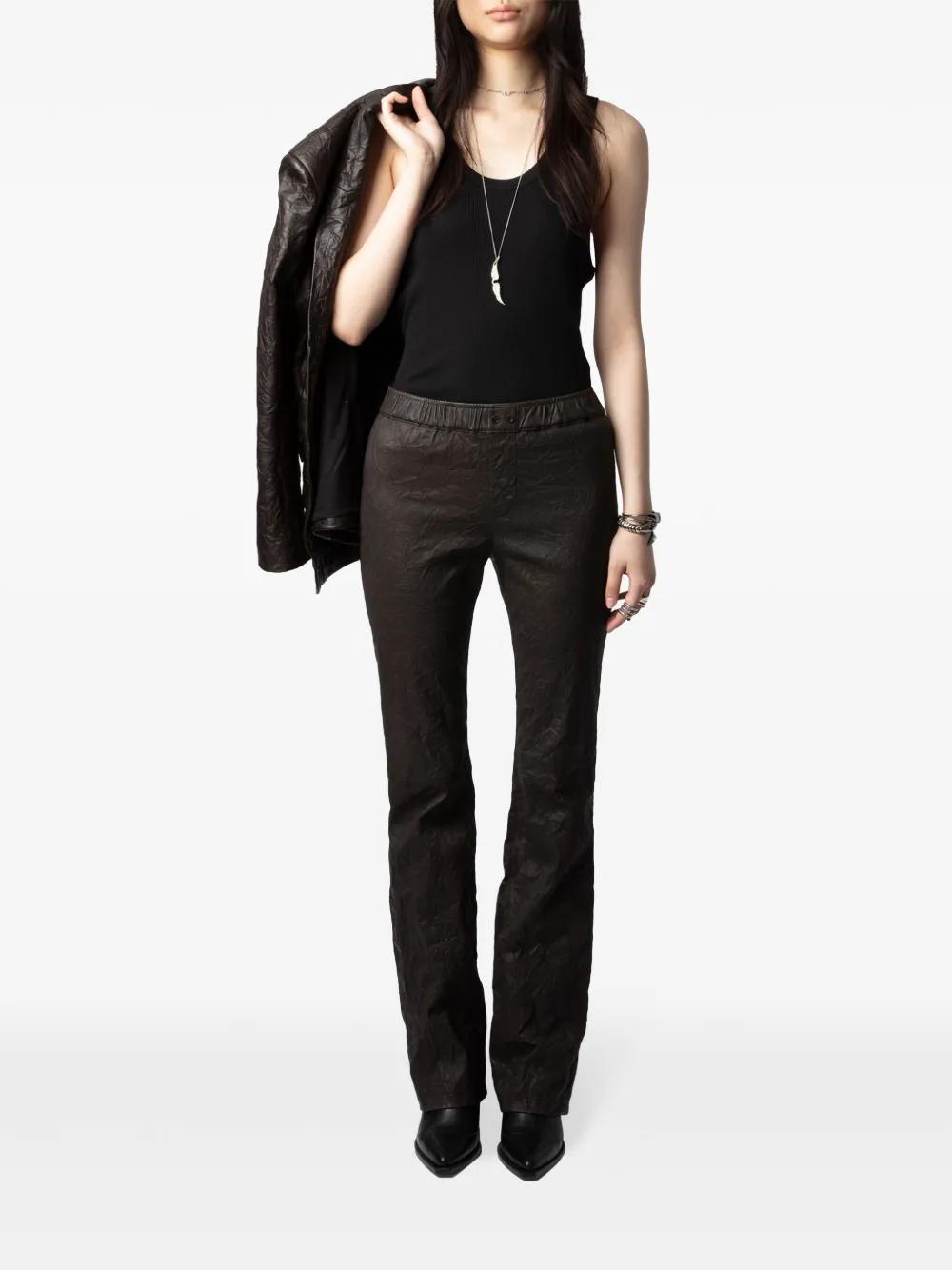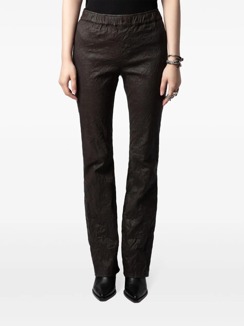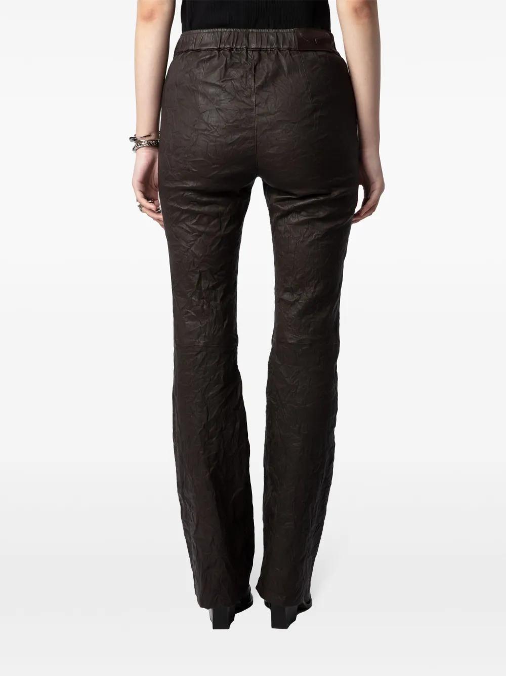 cedar brown lambskin crinkled finish elasticated waistband eyelet detailing logo patch to the rear straight hem straight leg